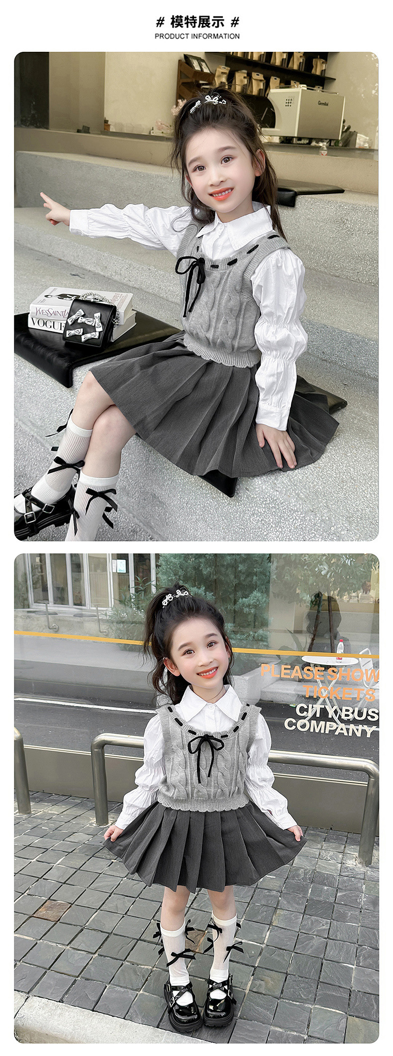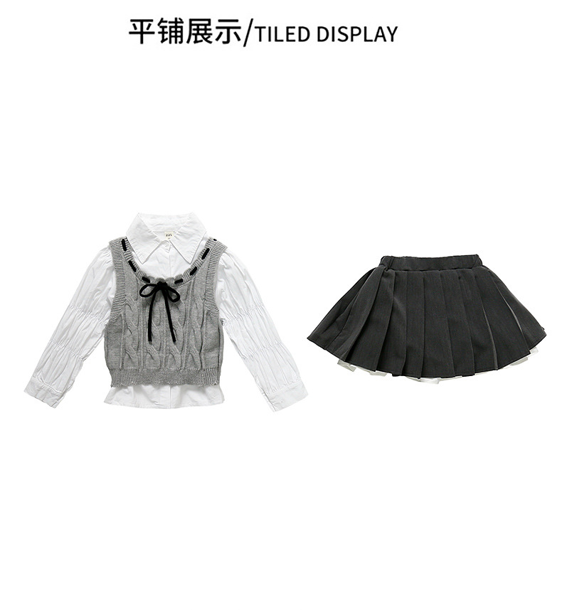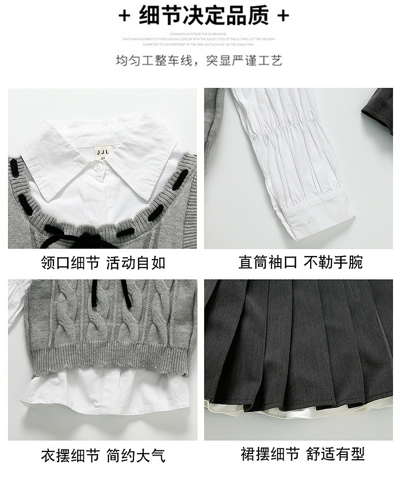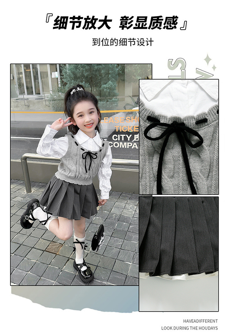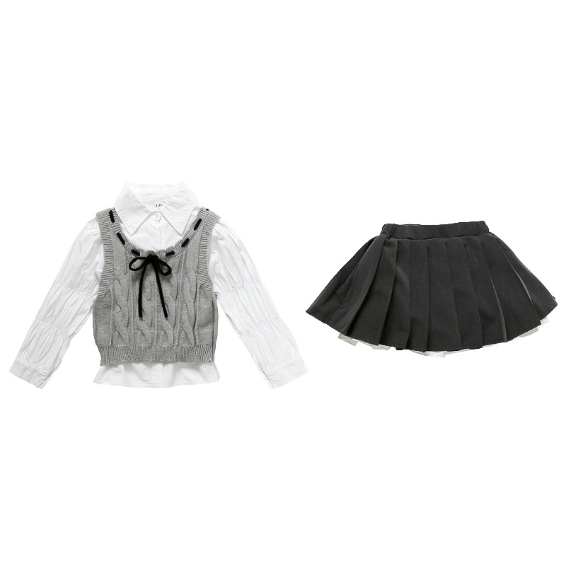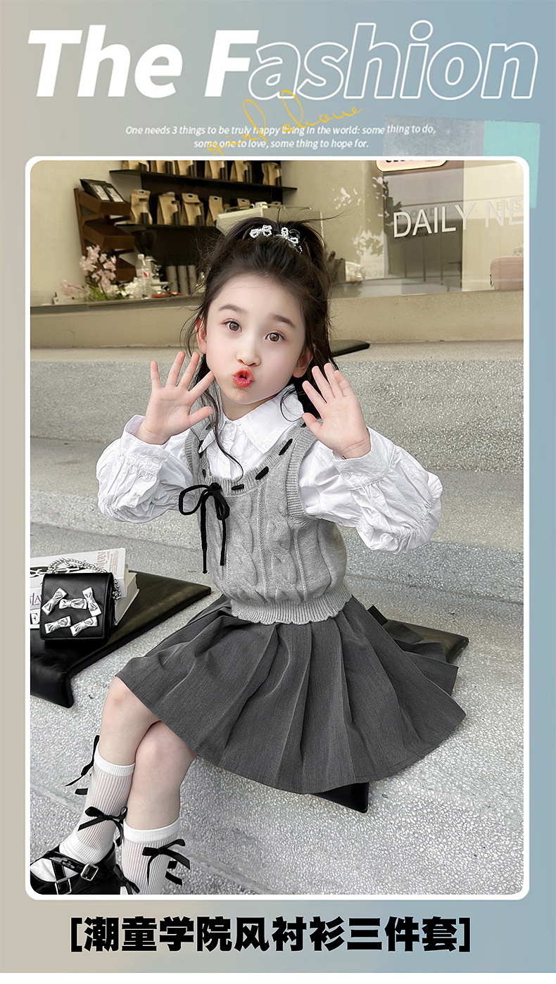 소녀의 세련된 봄 원피스 세트 2025 새로운 어린이 어린 소녀 대학 스타일 봄 원피스 3 피스 세트스토어 가기