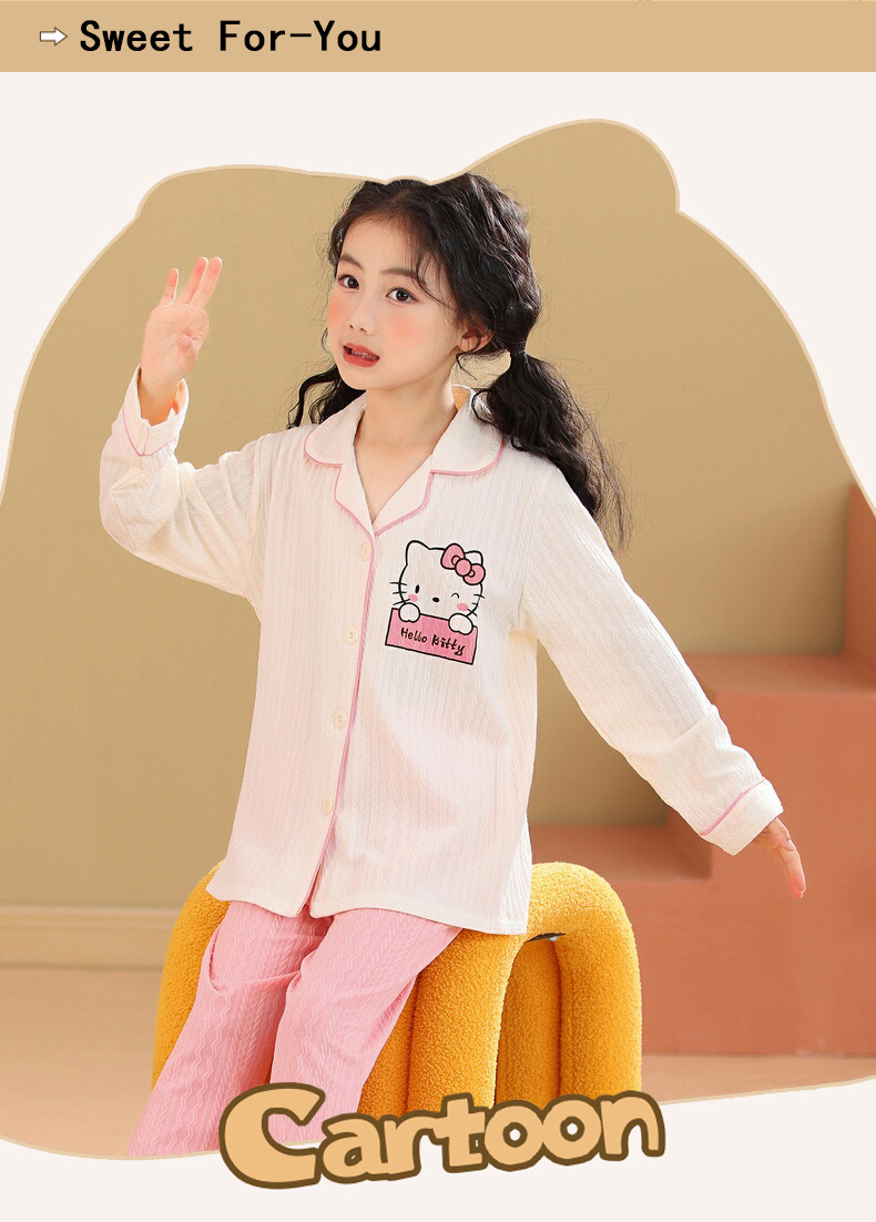 사랑스러운 카피 발라 소녀 잠옷 여성의 봄과 가을 카디건 긴팔 공주 만화 큰 어린이 집 옷 세트스토어 가기