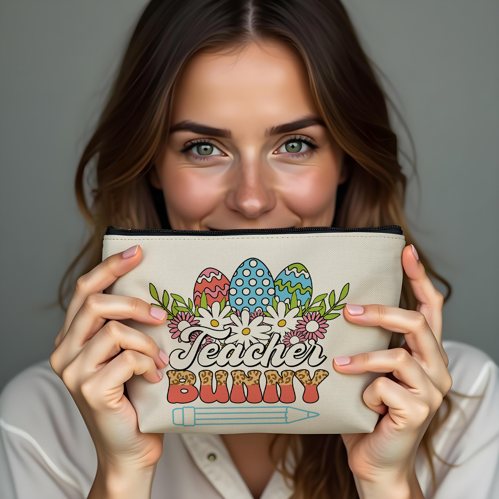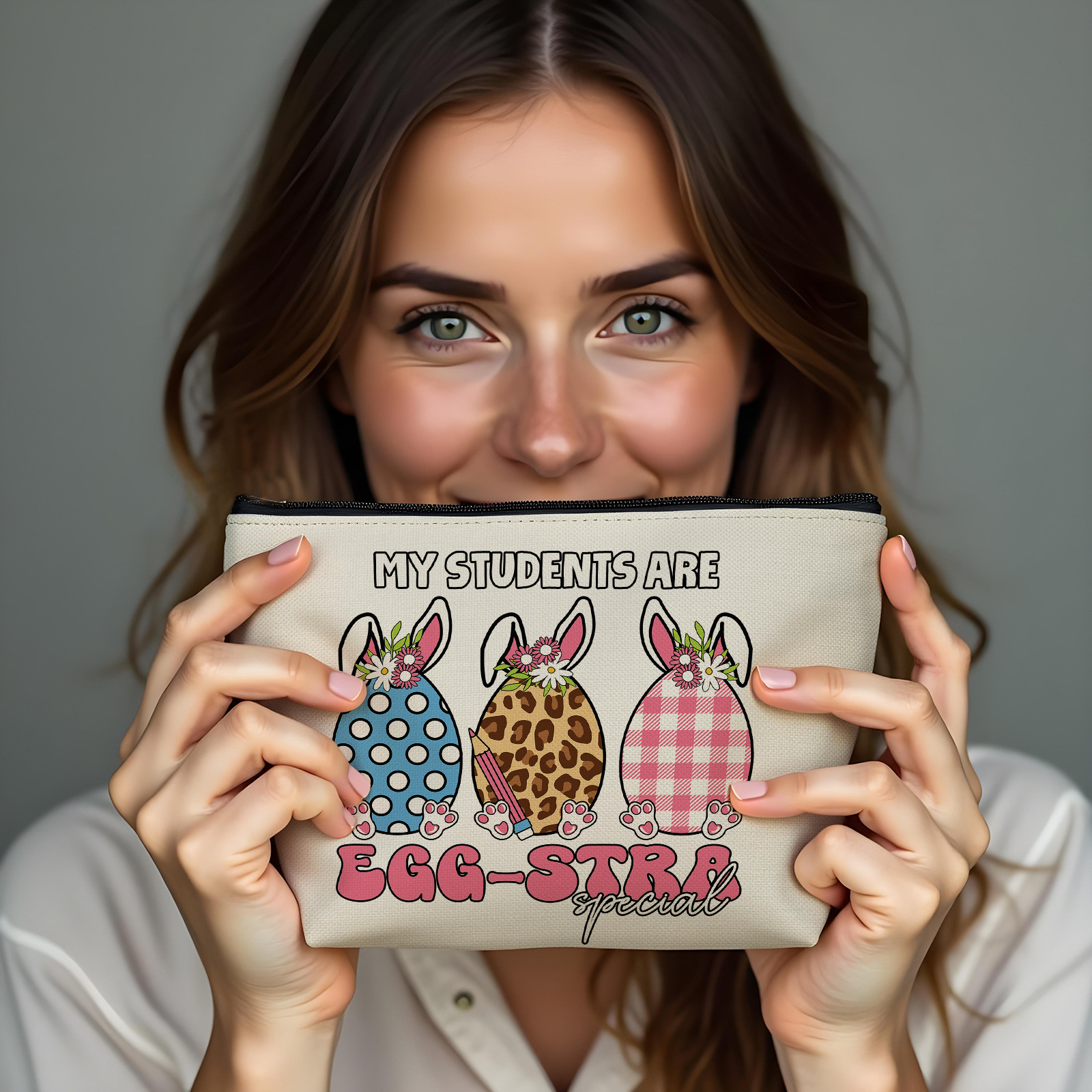국경 간 아마존 지퍼 보관 가방 부활절 인쇄 고급 심 가방 학생 연필 가방 여성의 다기능 화장품 가방스토어 가기
