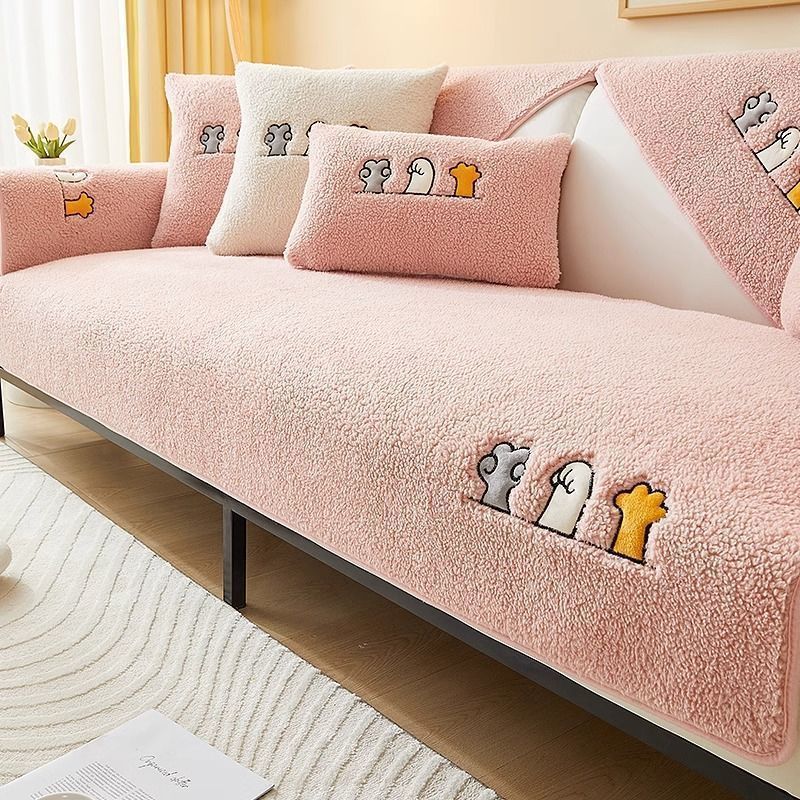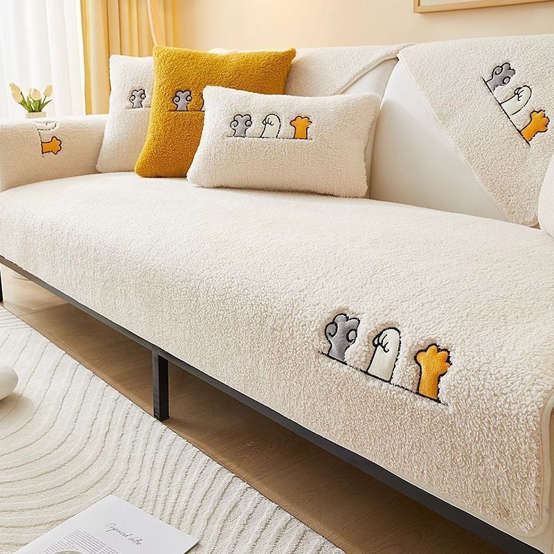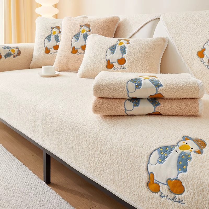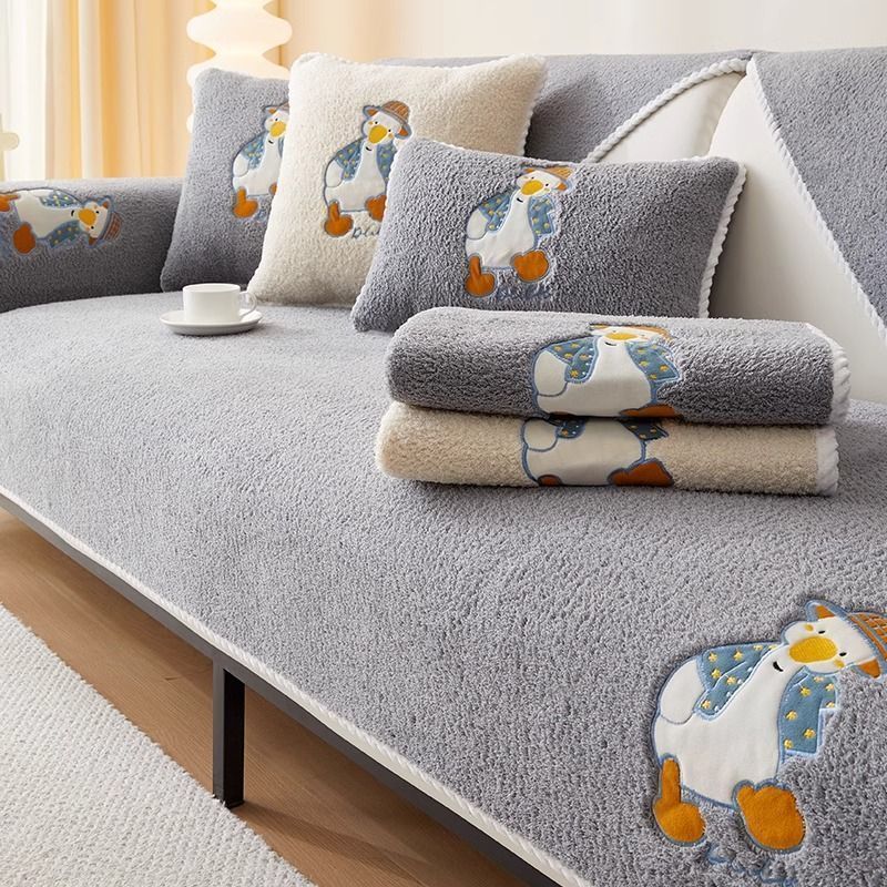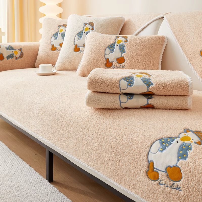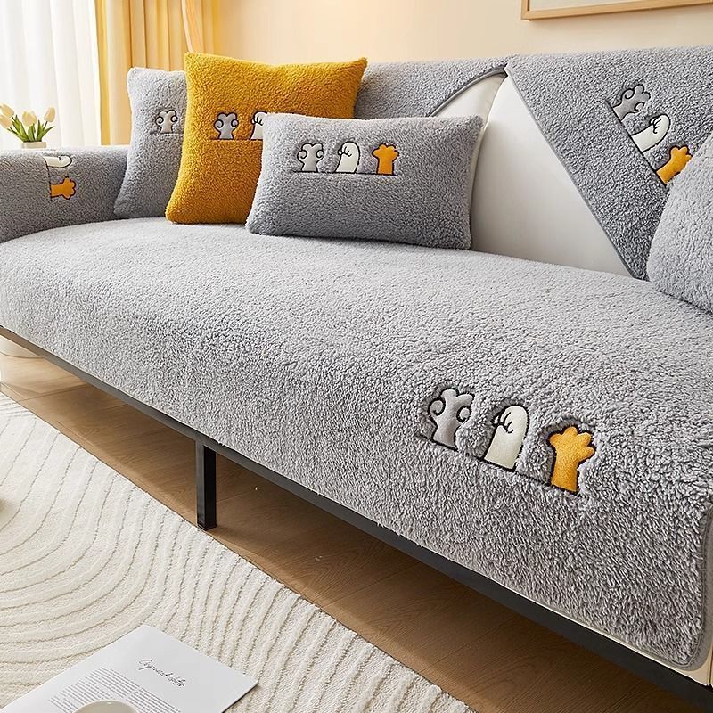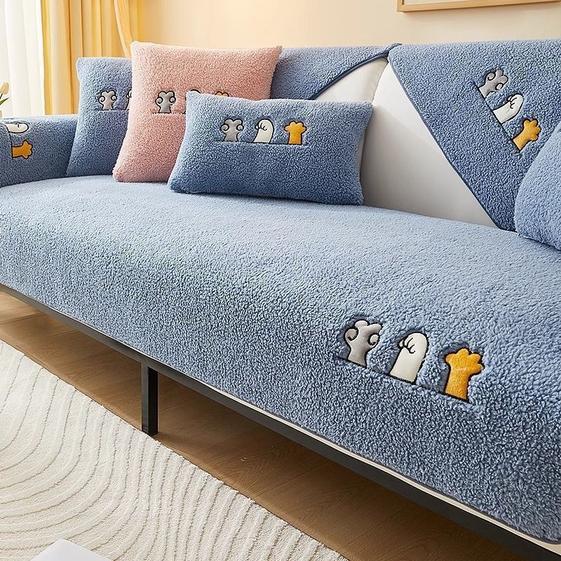 겨울 봉제 소파 쿠션 만화 자수 겨울 두꺼운 미끄럼 방지 2023 새로운 가을과 겨울 가죽 쿠션 커버 커버스토어 가기