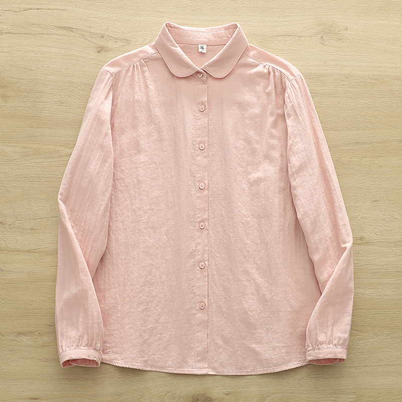 일본 모리 여성의 단색 작은 위안 칼라 여성 카디건 긴 소매 더블 원사 셔츠 도매스토어 가기