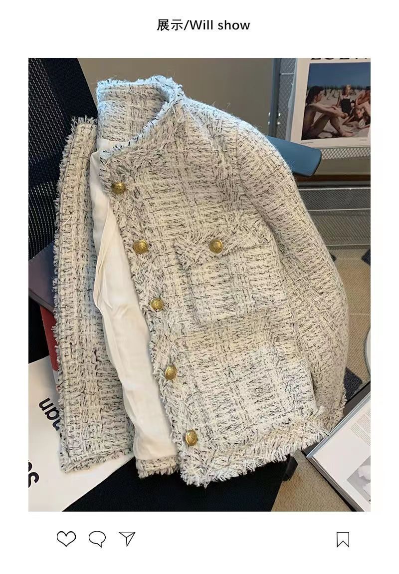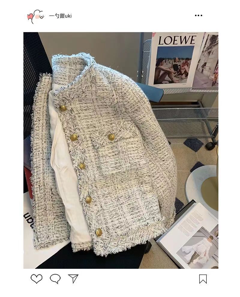 A6C [하이 퀄리티] 프랑스 사교계 샤넬 스타일 코트 여성의 가을 2023 새로운 기질 금속 버클 술스토어 가기