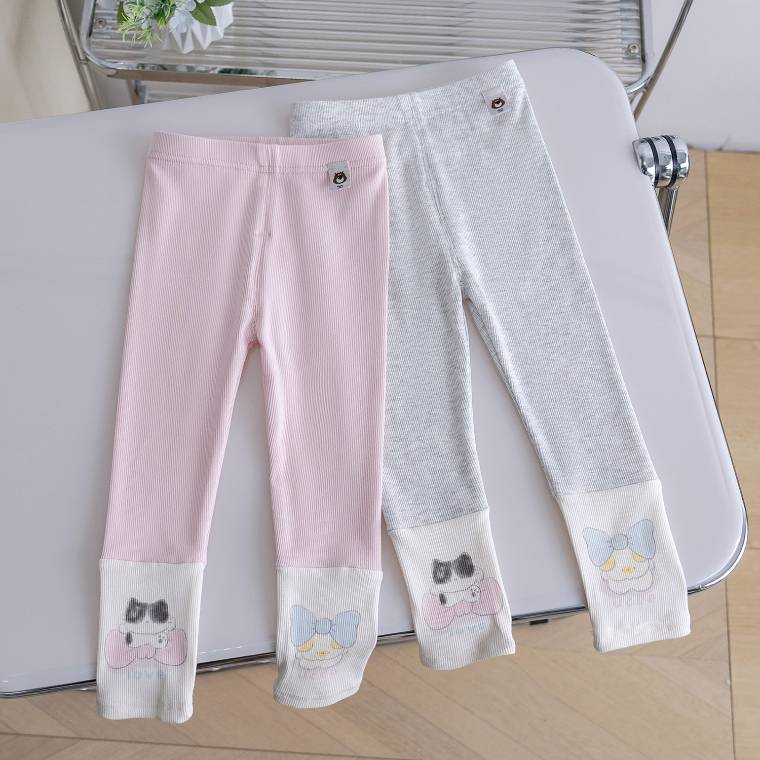 소녀의 만화 레깅스 2025 봄 새로운 패션 핏 스레드 컬러 매칭 어린 소녀의 탄성 외부 착용 바지스토어 가기