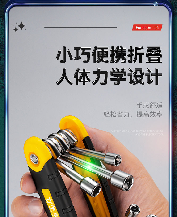 휴대용 소켓 렌치 다기능 접이식 앨런 렌치 조합 세트 도구 보편적 인 유지 보수 도구