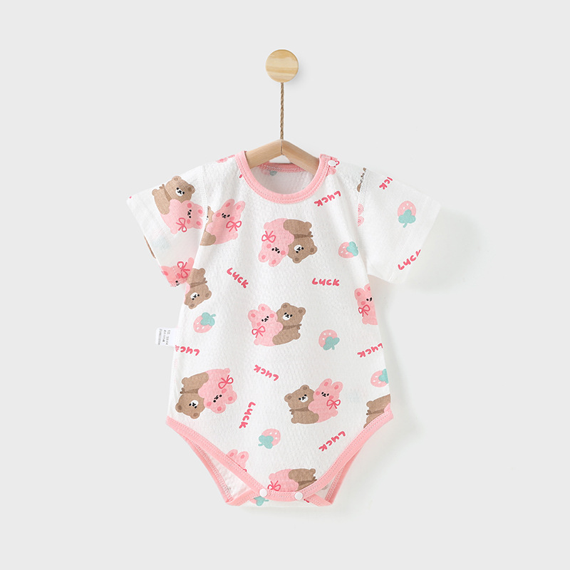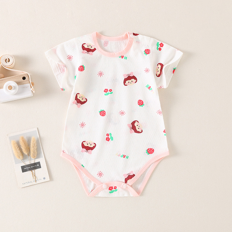 아기의 여름 순수한면 반팔 가방 뚱뚱한 옷 아기의 여름 통기성 삼각형 모자 셔츠 등반 의류 신생아 원피스 옷