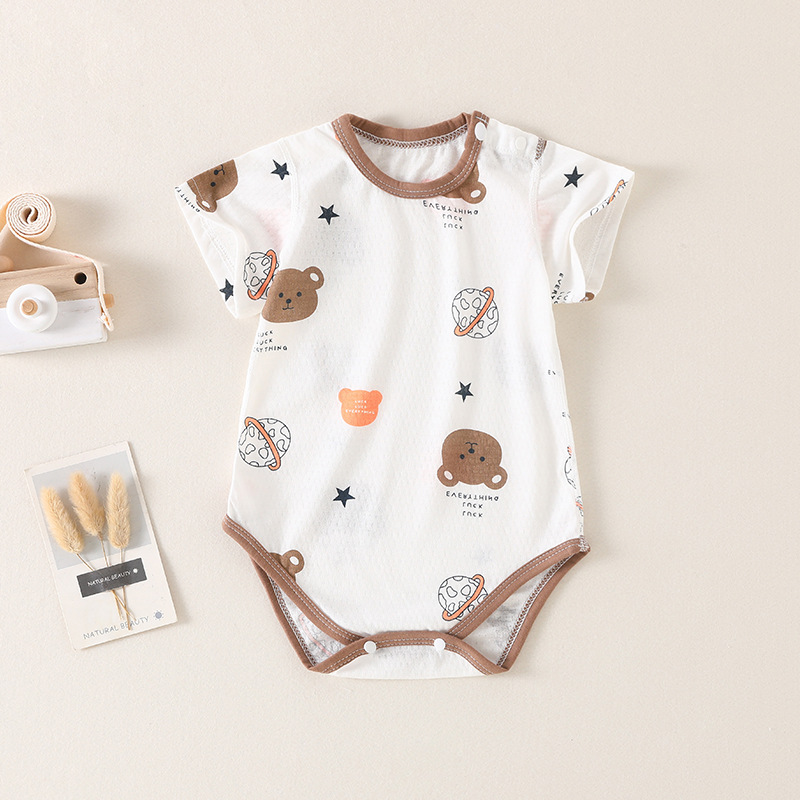 아기의 여름 순수한면 반팔 가방 뚱뚱한 옷 아기의 여름 통기성 삼각형 모자 셔츠 등반 의류 신생아 원피스 옷스토어 가기