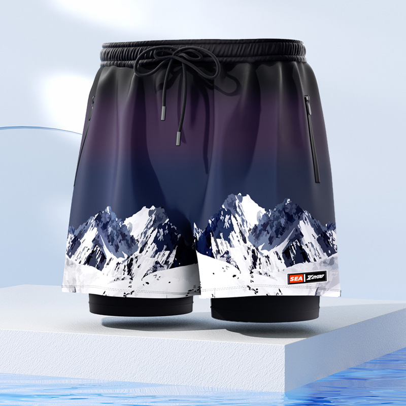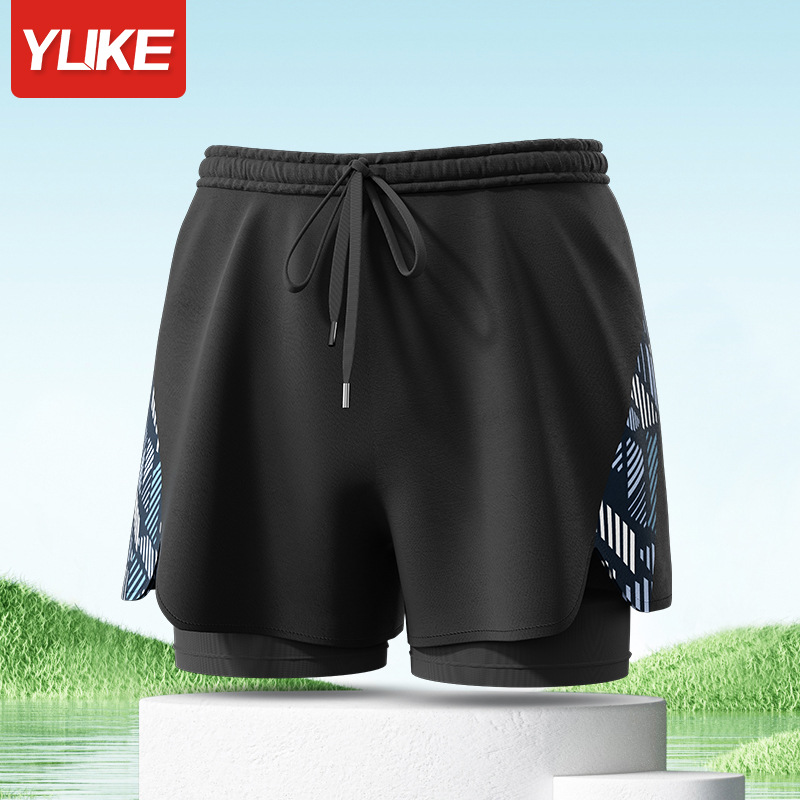 Yuke 성인 수영 트렁크 남성 더블 레이어 빠른 건조 전문 방황 수영 트렁크 새 플러스 사이즈 느슨한 자외선 차단제 비치 바지