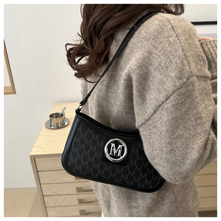 패션 예술적 언더암 가방 새로운 도착 2025 봄 새로운 한국 틈새 간단한 편지 인쇄 질감 어깨 가방스토어 가기