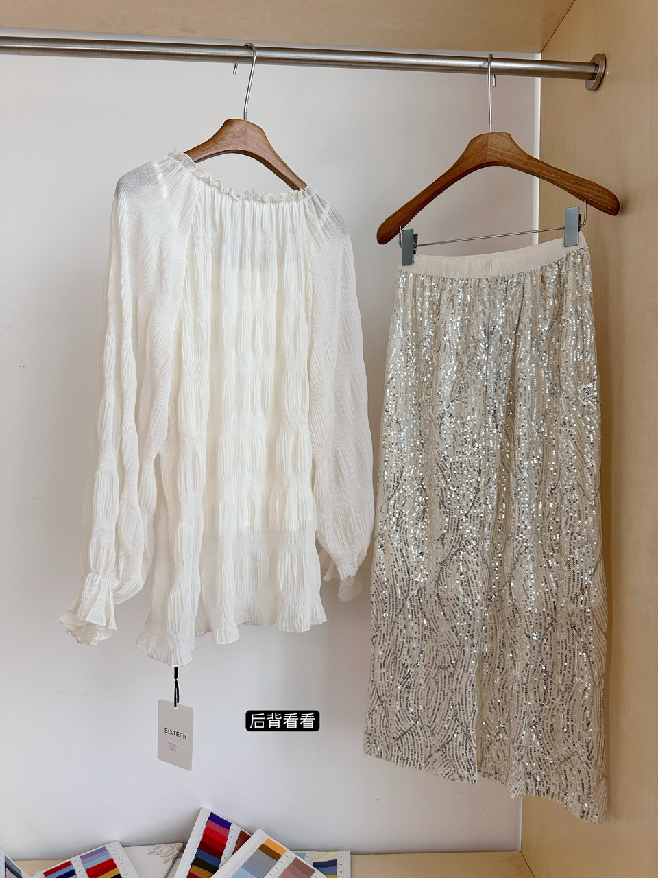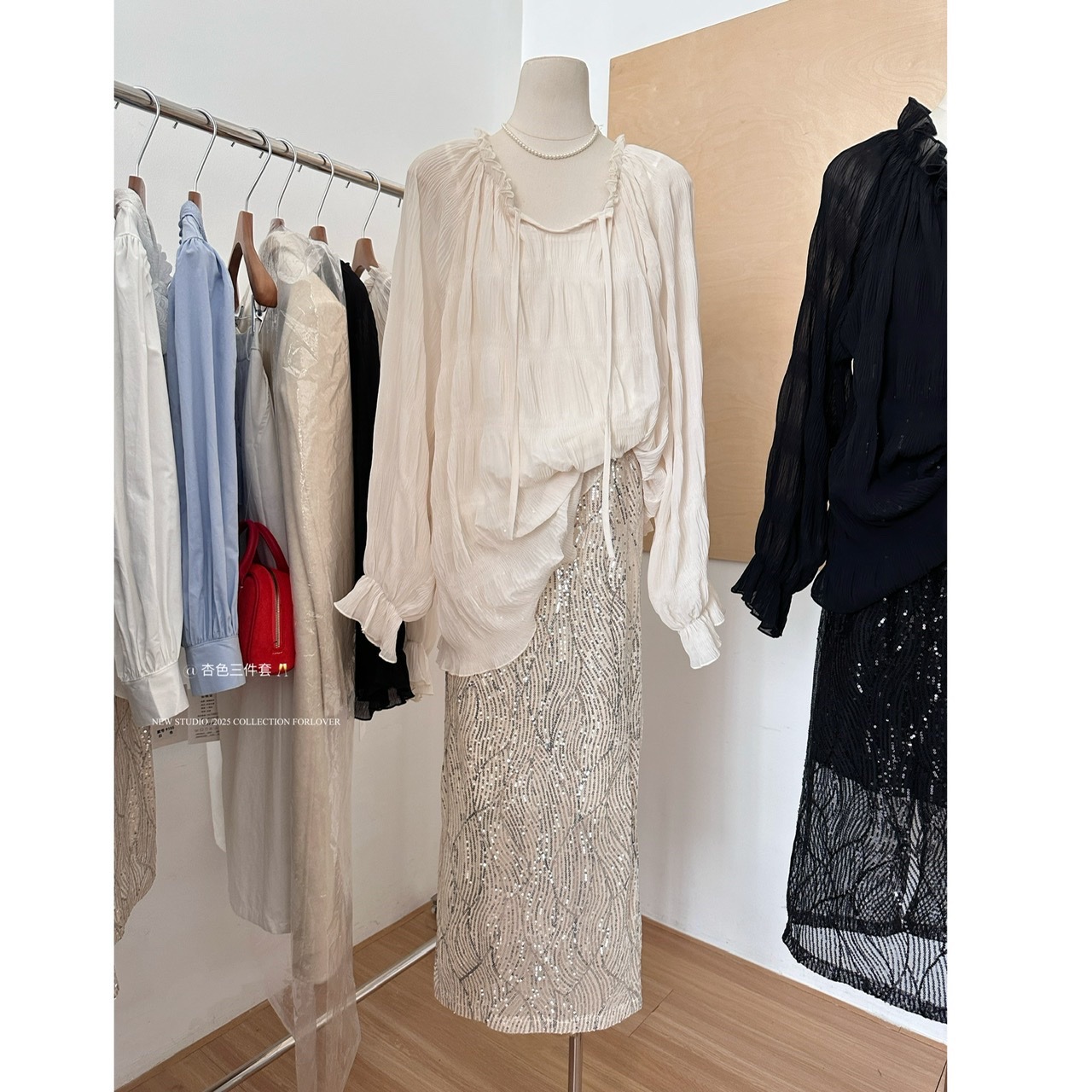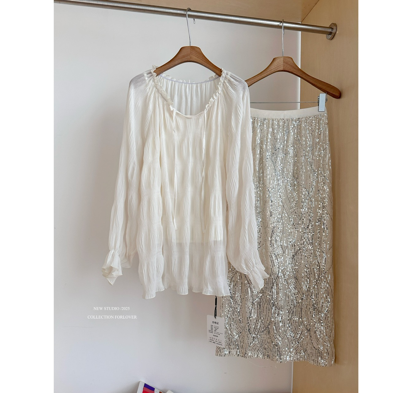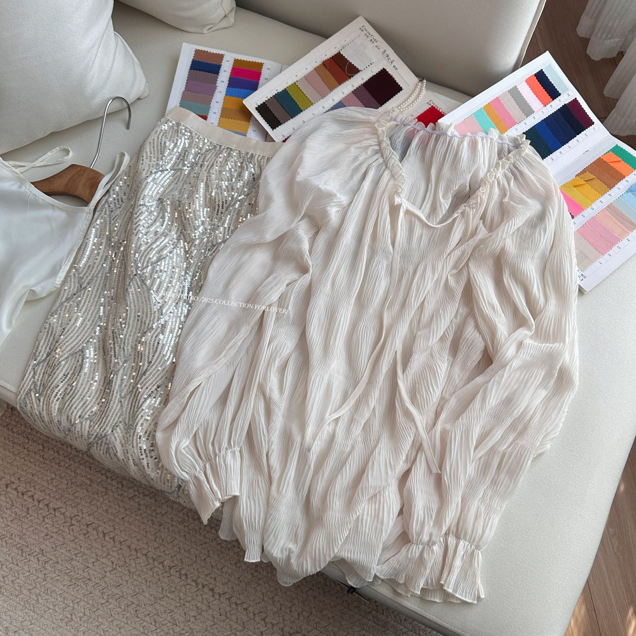 • 살구 스팽글 스커트
