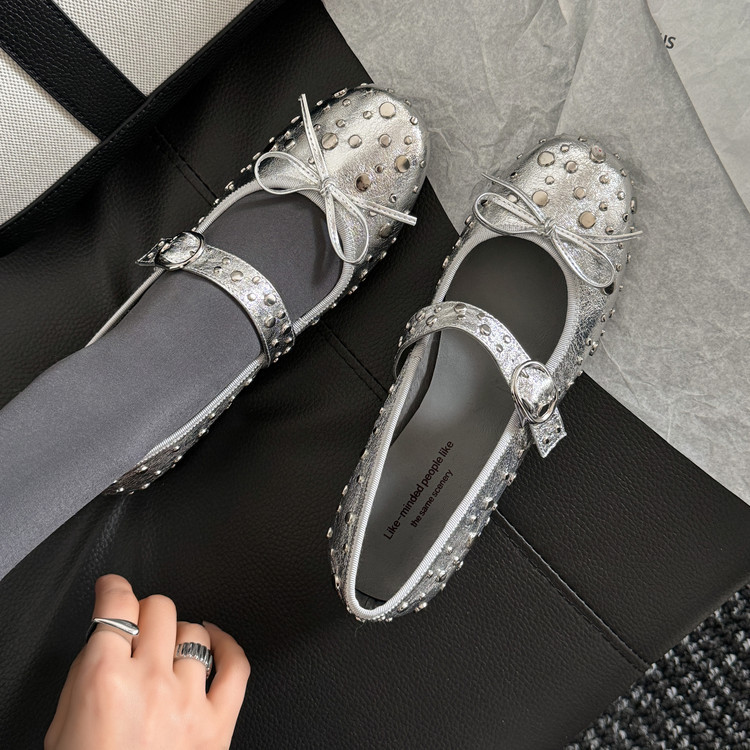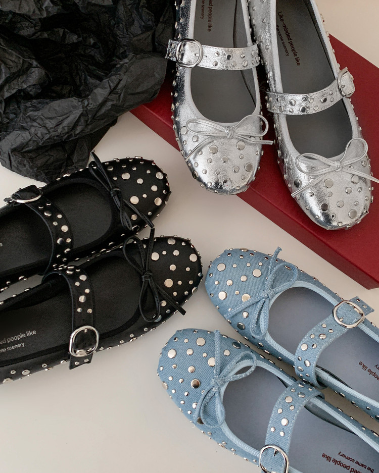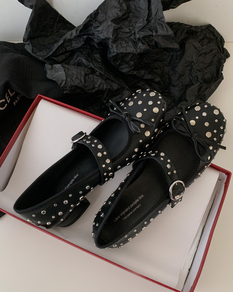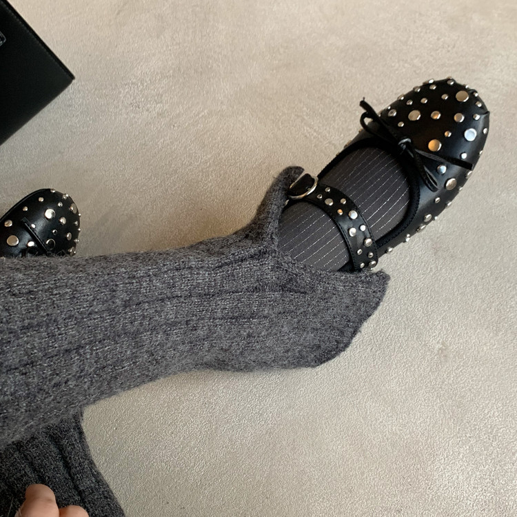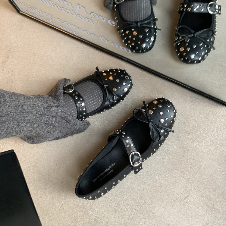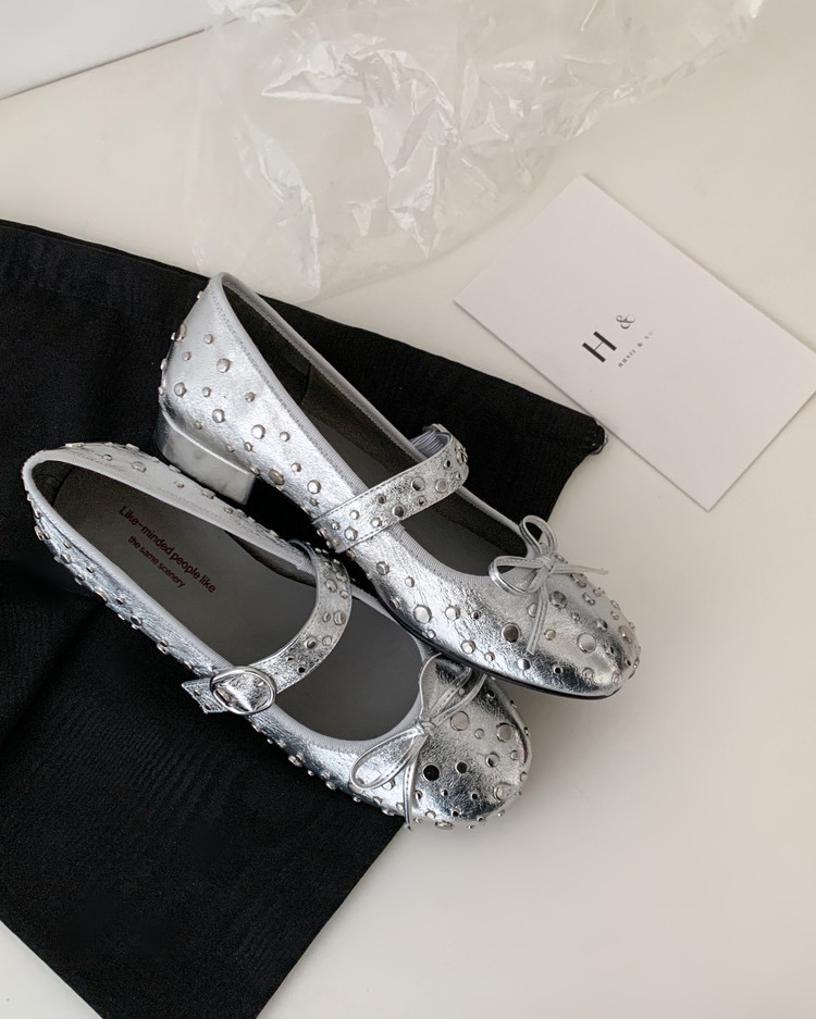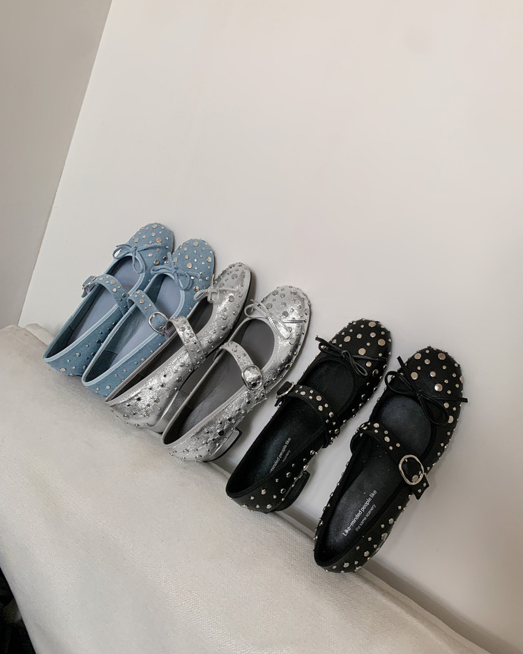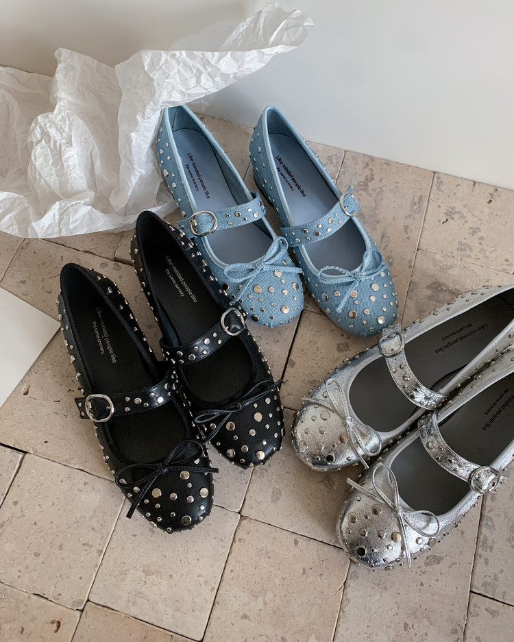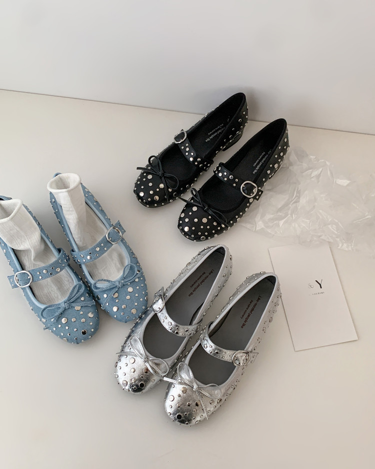 데님 리벳 메리 제인 신발 여성용 두꺼운 힐 신발 새로운 라운드 토 활 미드 힐 신발 여성용 정품 가죽 얕은 입 신발스토어 가기
