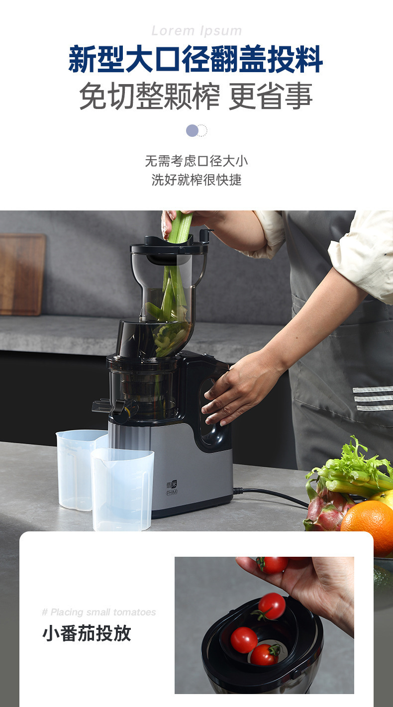 새로운 가정용 주스 기계, 주스 분리기, 대구경 완전 자동 상업용 다기능 주스 기계