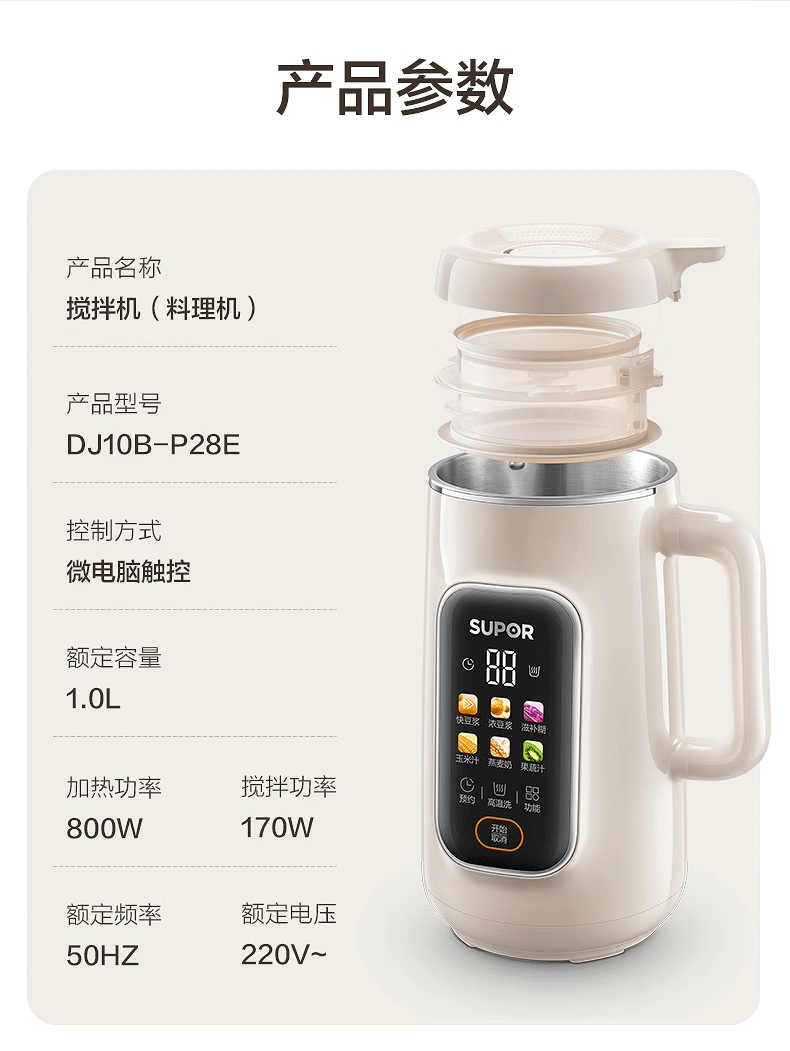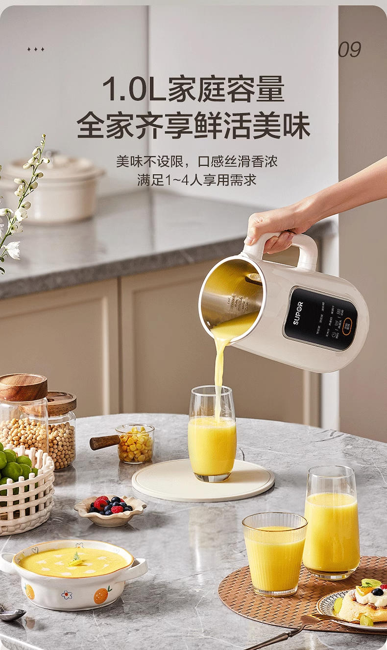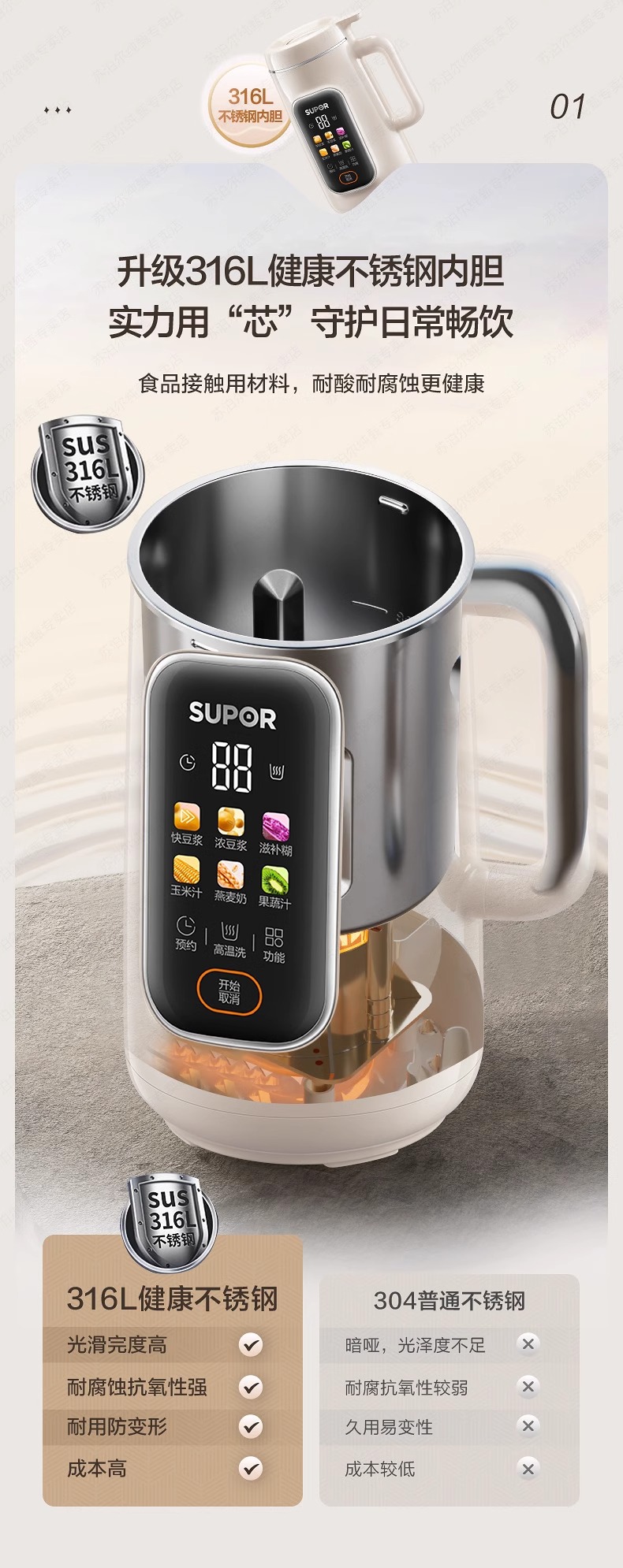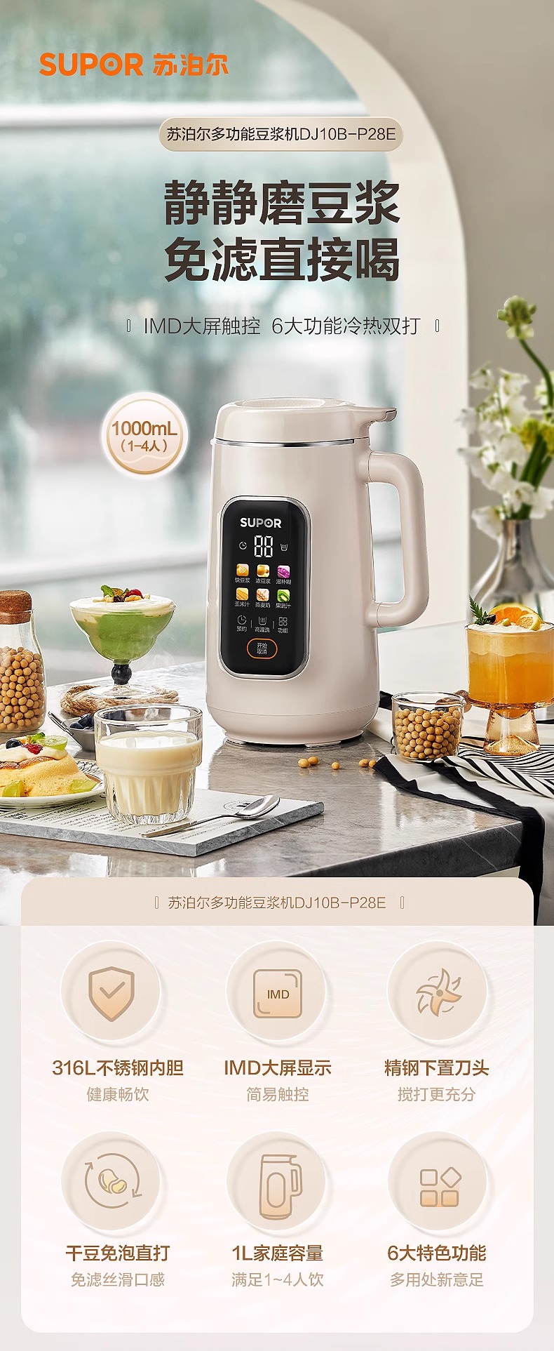 Suppor 두유 기계 1L 가정 벽 깨는 요리 기계 두 배 맛 두유 기계 316L 스테인레스 스틸 DJ10B-P28E