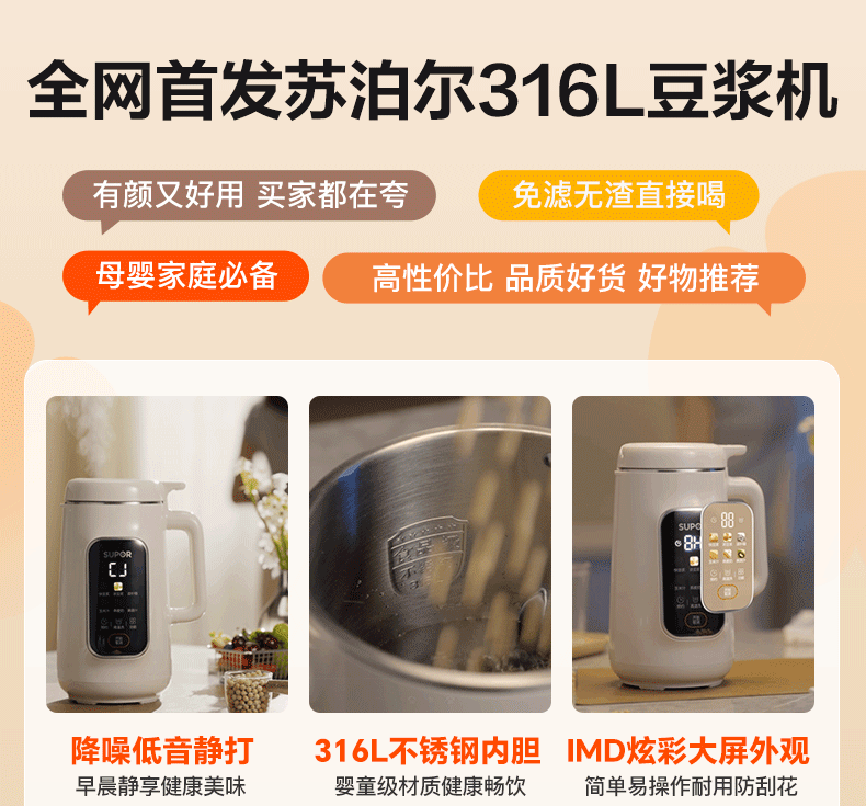 Suppor 두유 기계 1L 가정 벽 깨는 요리 기계 두 배 맛 두유 기계 316L 스테인레스 스틸 DJ10B-P28E스토어 가기