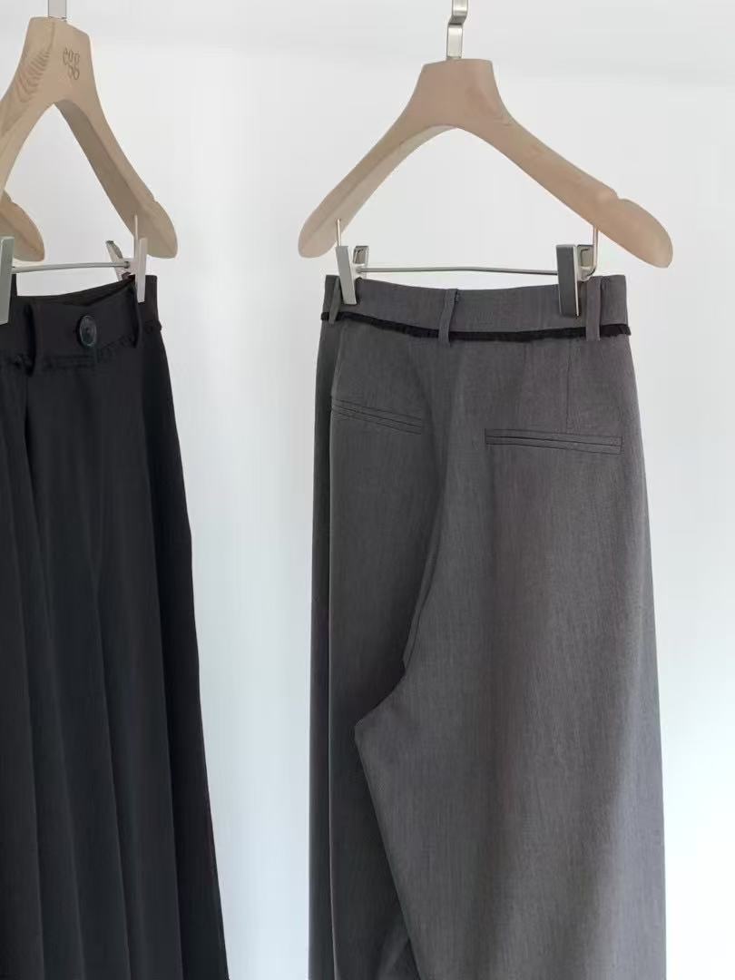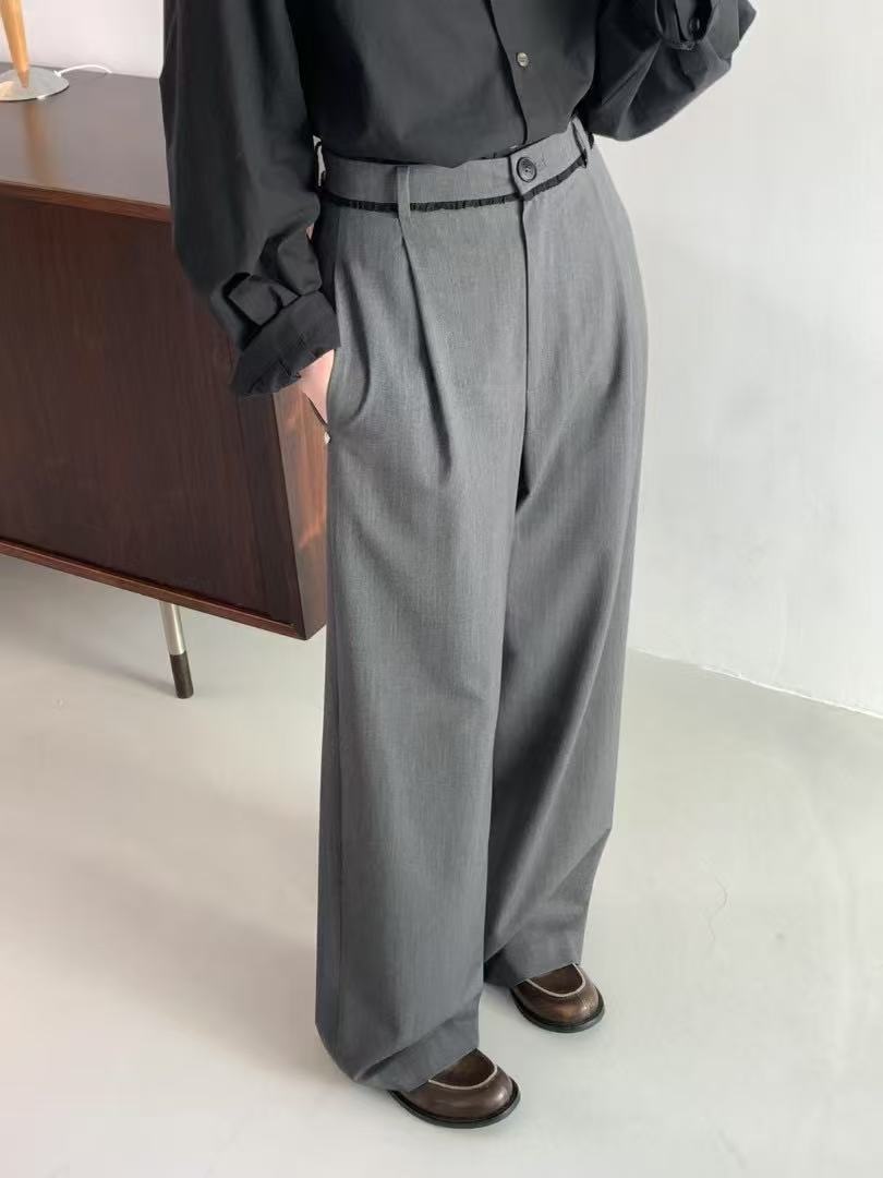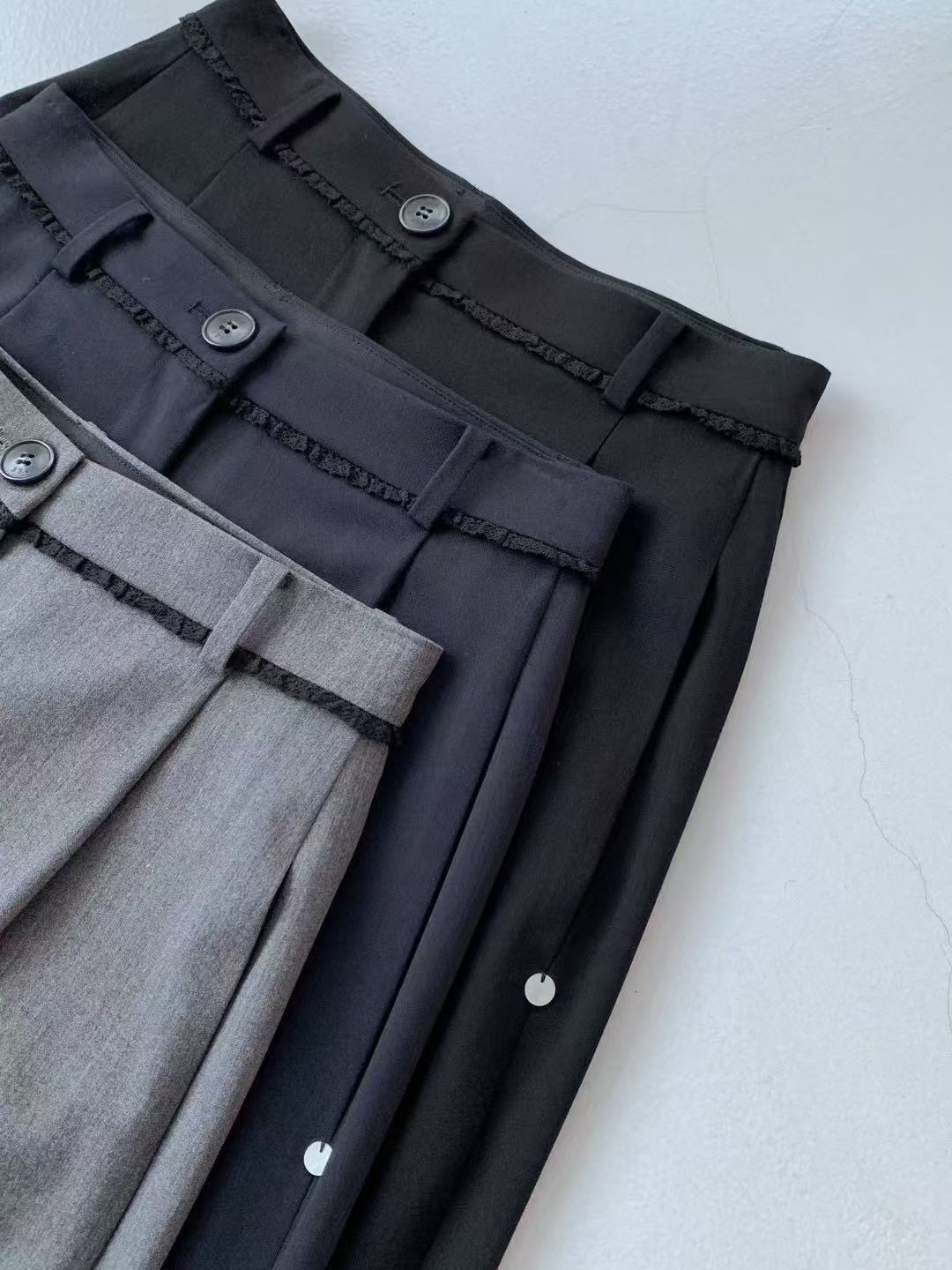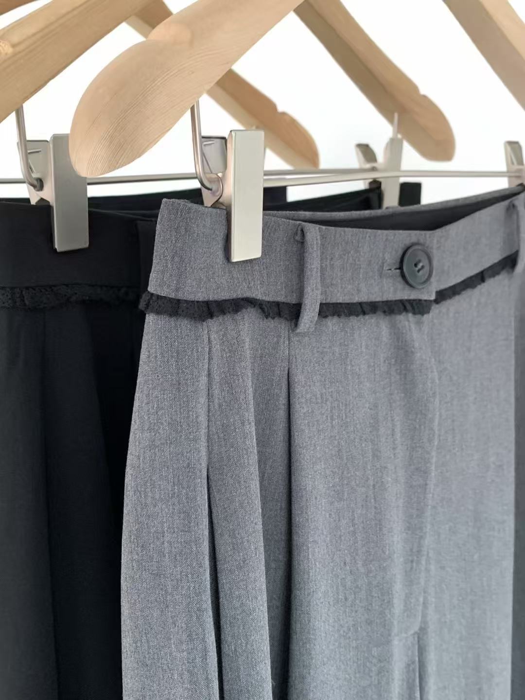 스팟 2025 봄 신상 한국 동대문 e*gg 시크 웨이스트 레이스 드레이프 캐주얼 팬츠