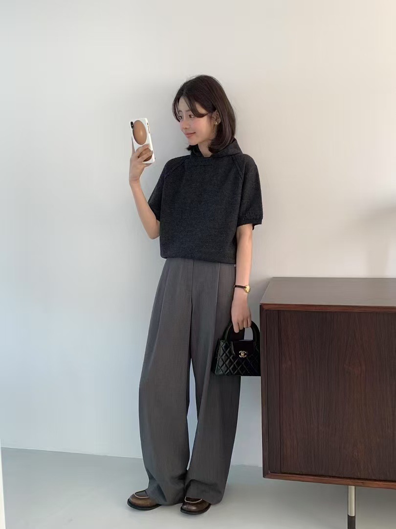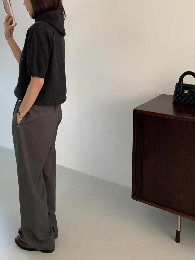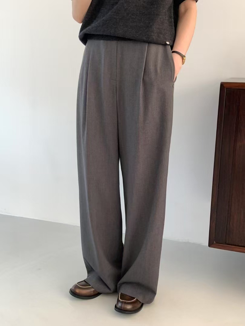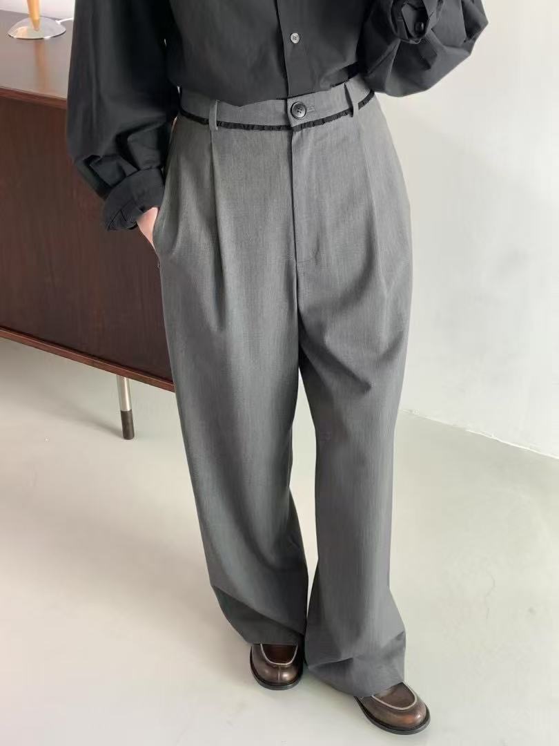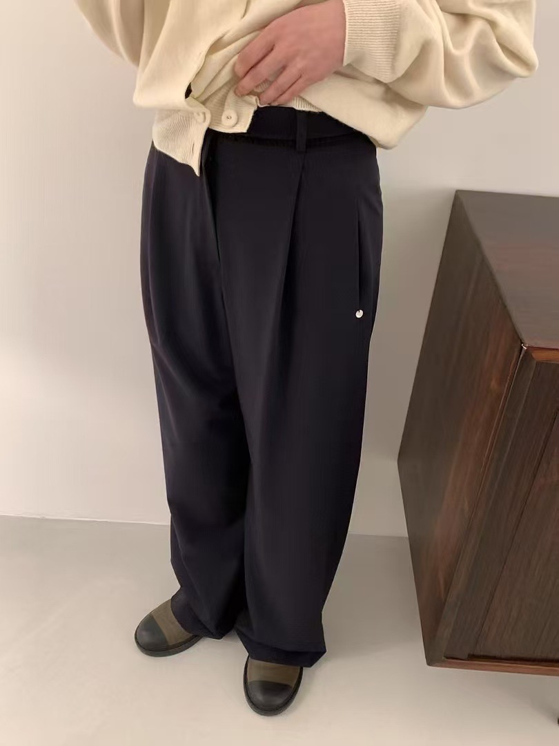 스팟 2025 봄 신상 한국 동대문 e*gg 시크 웨이스트 레이스 드레이프 캐주얼 팬츠