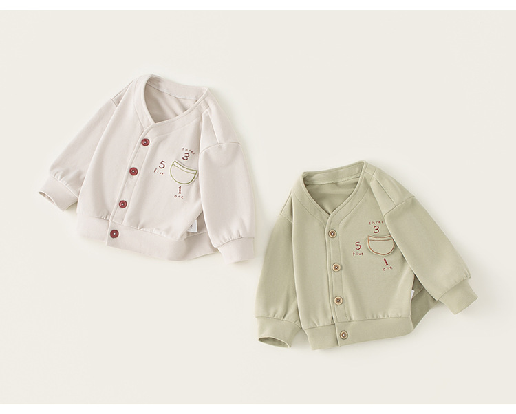 봉, 아기의 봄 탑 어린이 새 가슴 긴 소매 간단한 편지 인쇄 포켓 카디건 외부 착용스토어 가기