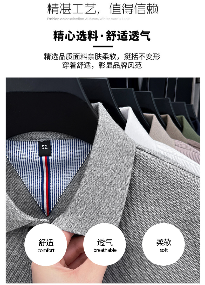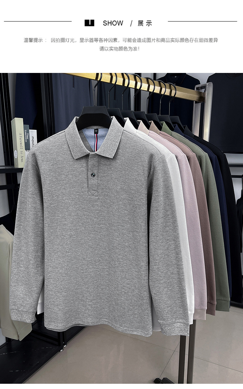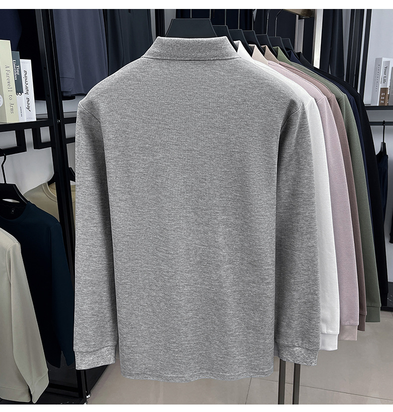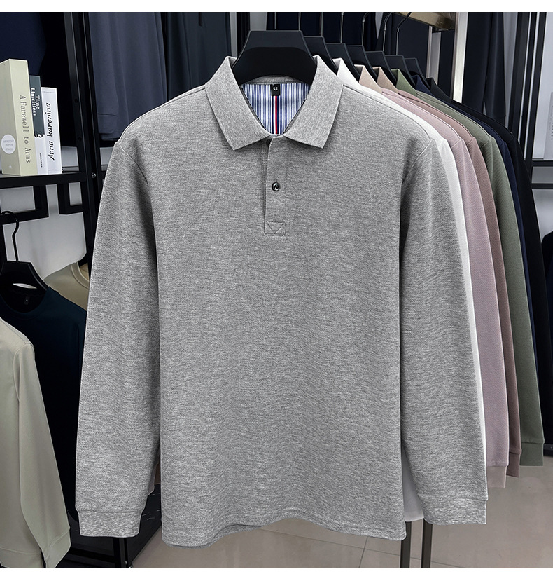 2025 봄과 가을 새로운 100 순수 면화 구슬 남성용 폴로 셔츠 비즈니스 캐주얼 단색 옷깃 긴 소매 티셔츠 남성용스토어 가기