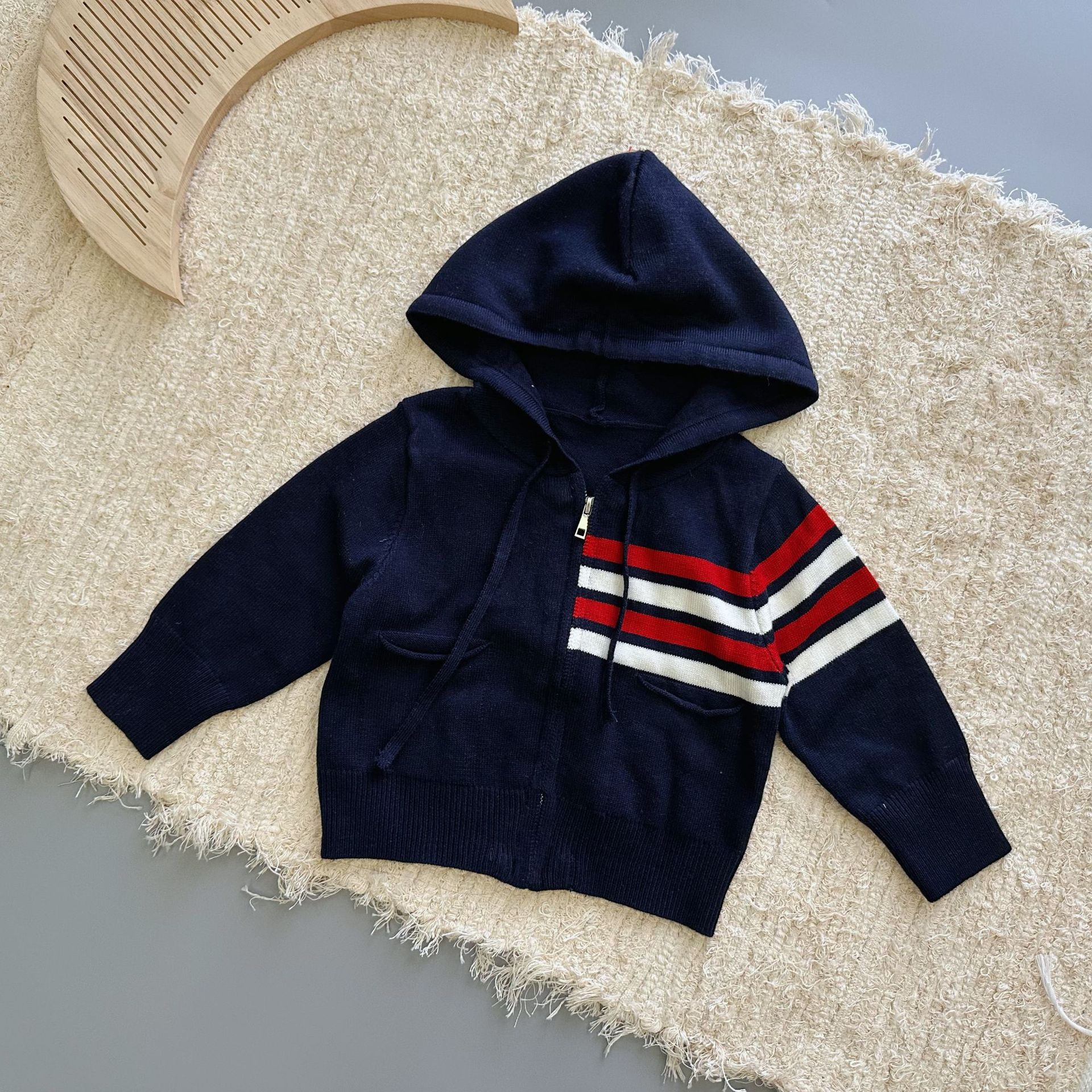 • 네이비 컬러 스트라이프 후드 가디건