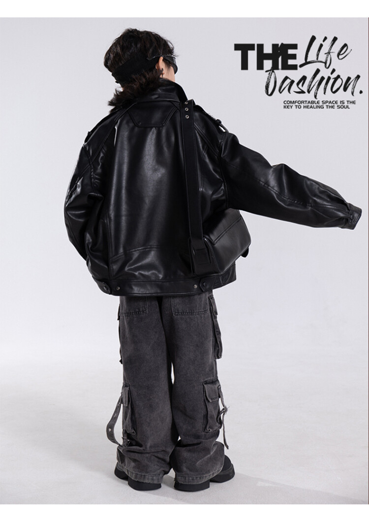 소년 가죽 자켓 2025 년 봄과 가을 새로운 Yipi 잘 생긴 어린이 봄 탑 큰 어린이 봄 프라이드 스트리트 재킷스토어 가기