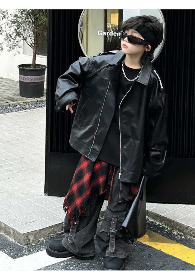 소년 가죽 자켓 2025 년 봄과 가을 새로운 Yipi 잘 생긴 어린이 봄 탑 큰 어린이 봄 프라이드 스트리트 재킷