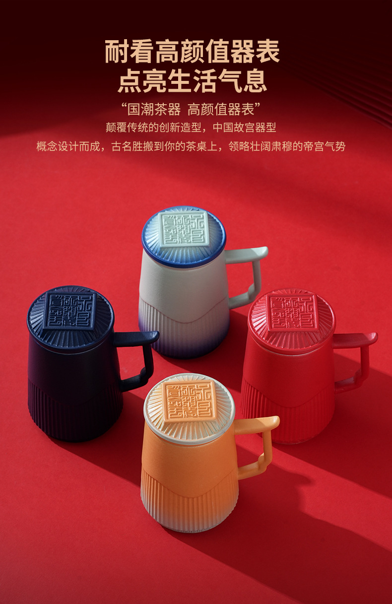 자금성 Wenchuang Guochao 크레인 세라믹 티 컵 차 물 분리 사무실 워터 컵 생일 졸업 선물 맞춤화