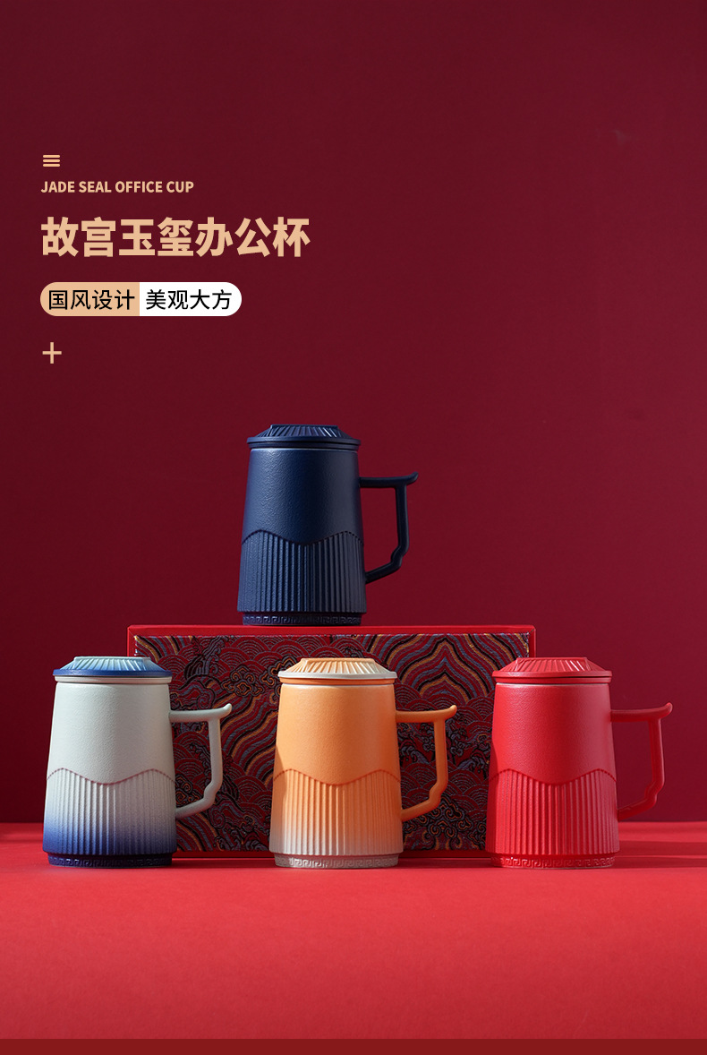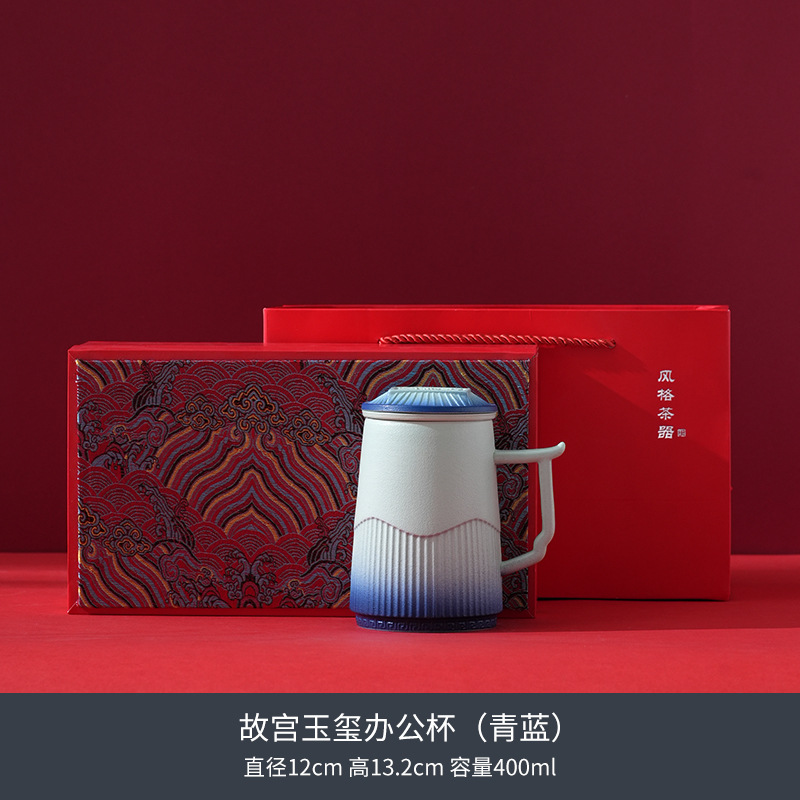 자금성 Wenchuang Guochao 크레인 세라믹 티 컵 차 물 분리 사무실 워터 컵 생일 졸업 선물 맞춤화스토어 가기