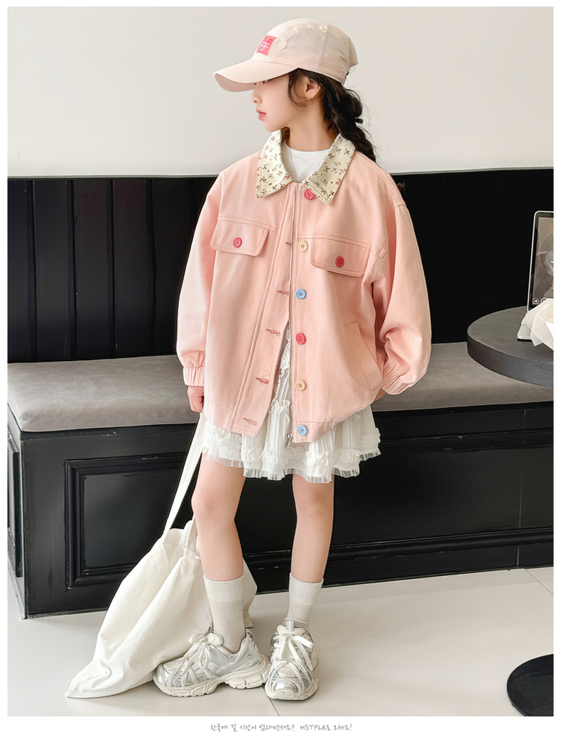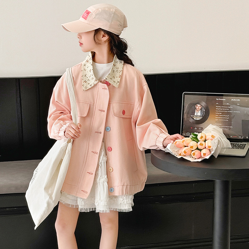 미국 레트로 핑크 탑 걸스 봄과 가을 새로운 디자인 센스 니쉬 플로랄 라셀 자켓 트렌디 한 크로스 보더 재킷