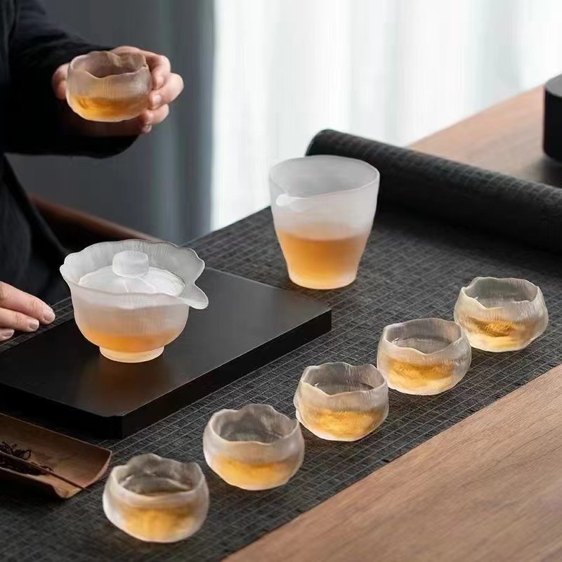 일본식 향치 차 고 부가가치 연꽃 유리 차 세트 가정용 완벽한 차 컵 세트 투명한 과일 와인 컵