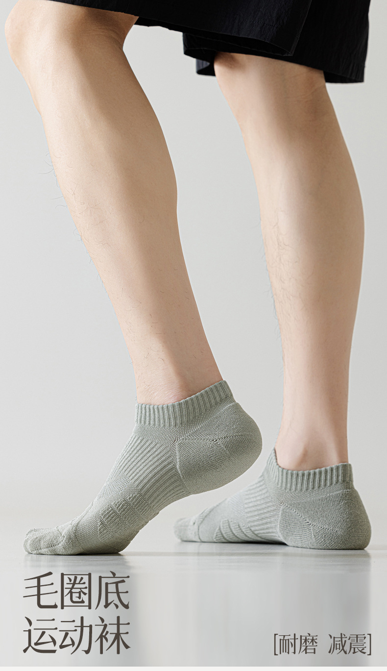 스포츠 양말 타월 바닥 남성 보트 양말 냄새 방지 필링 뼈없는 양말 솔리드 컬러 메쉬 통기성 땀 흡수성 코튼 러닝 양말