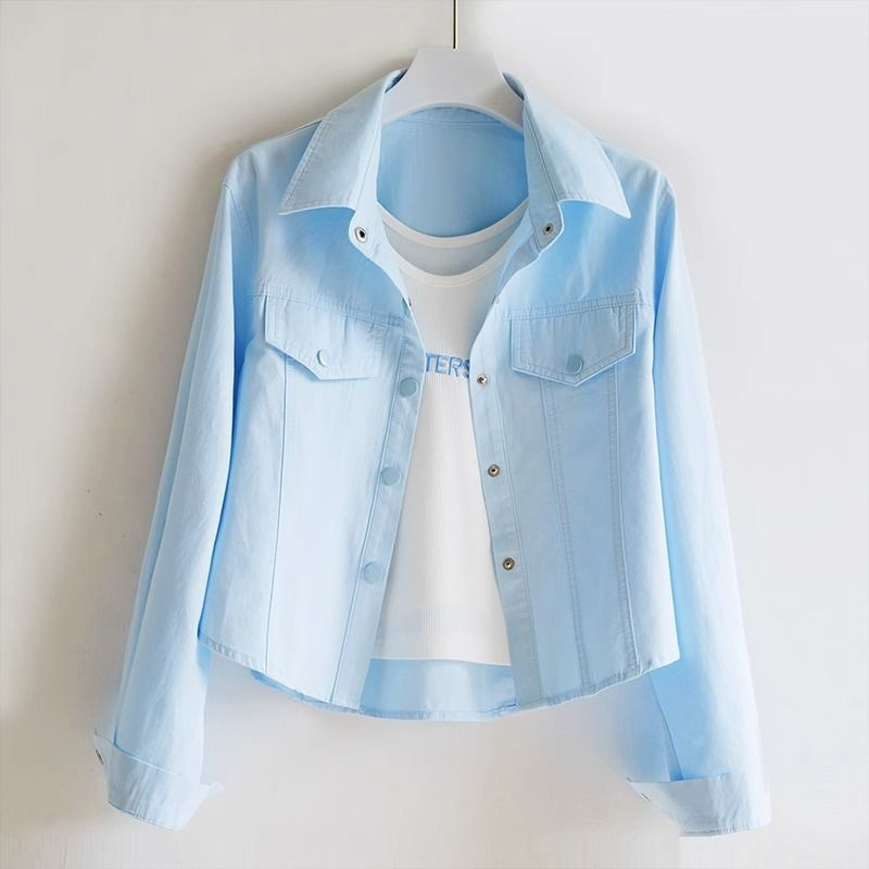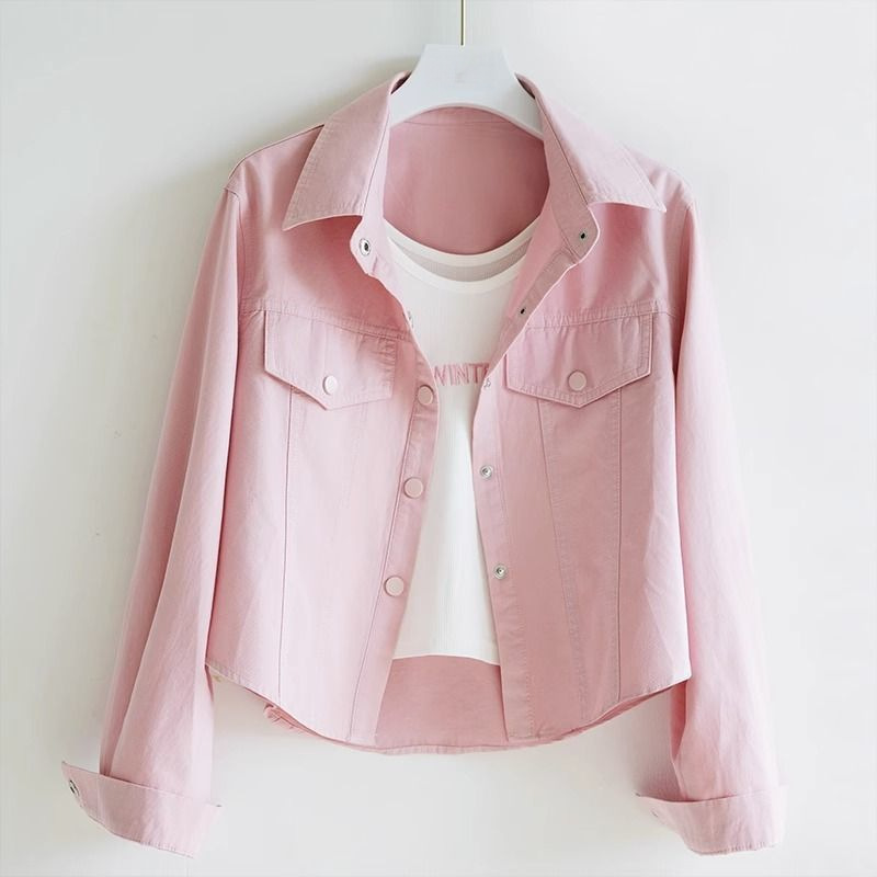 작은 코트 여성의 2024 가을 새로운 패션 다재다능한 짧은 디자인 달콤한 나이-얇은 셔츠 탑 감소스토어 가기