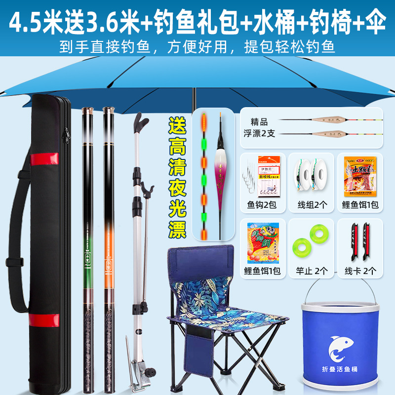 • 4.5m 무료 3.6m + 낚시 선물 팩 + 양동이 + 낚시 의자 + 우산