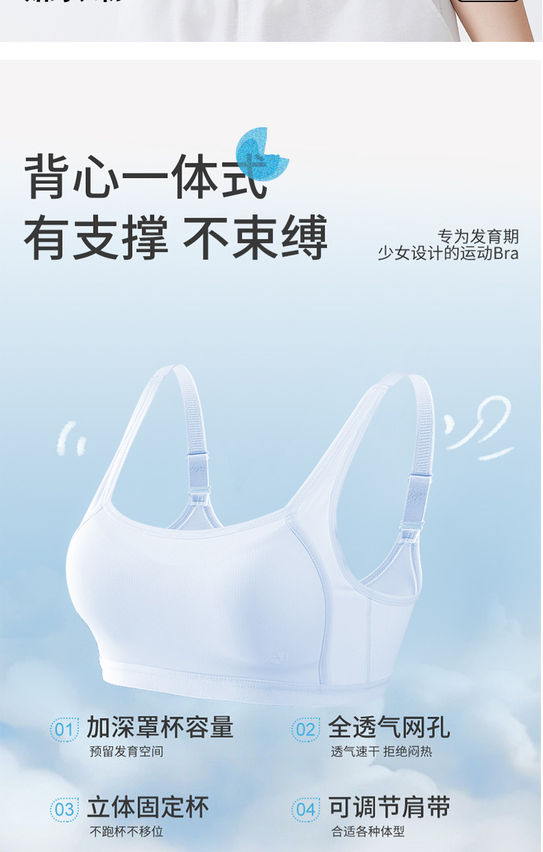 여아용 브라 스포츠 편안한 조끼 2 단계 개발 학생 중학생 및 고등학생을위한 여름 얇은 속옷