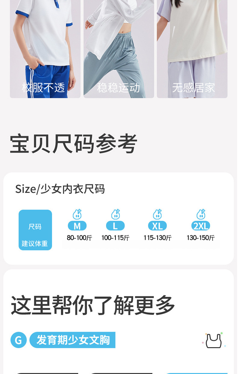 여아용 브라 스포츠 편안한 조끼 2 단계 개발 학생 중학생 및 고등학생을위한 여름 얇은 속옷스토어 가기