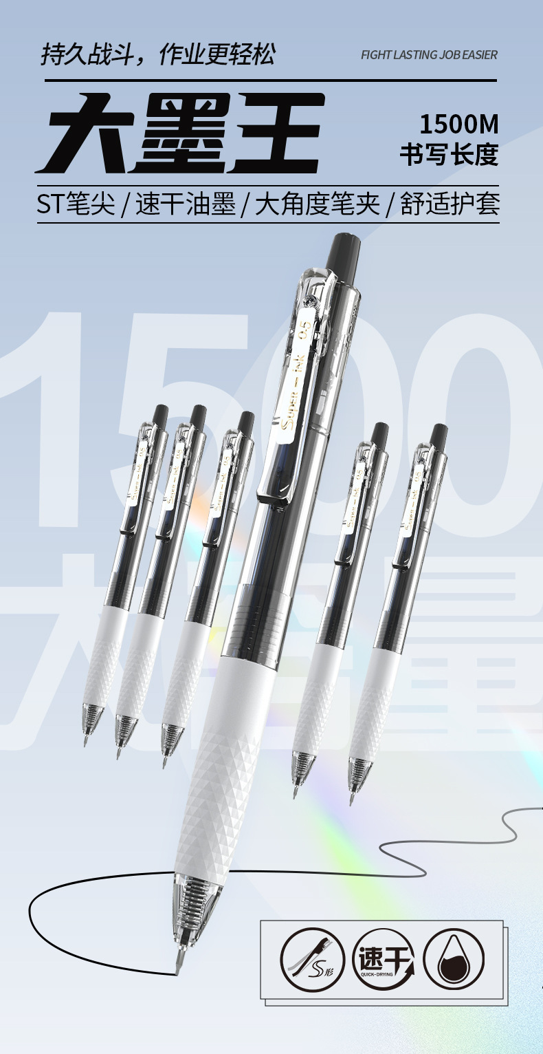 아침 빛 큰 잉크 킹 프레스 젤 펜 J9001 빠른 건조 펜 ST nib 대용량 학생 사무실 검은 펜 도매