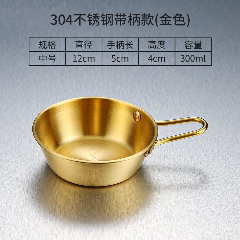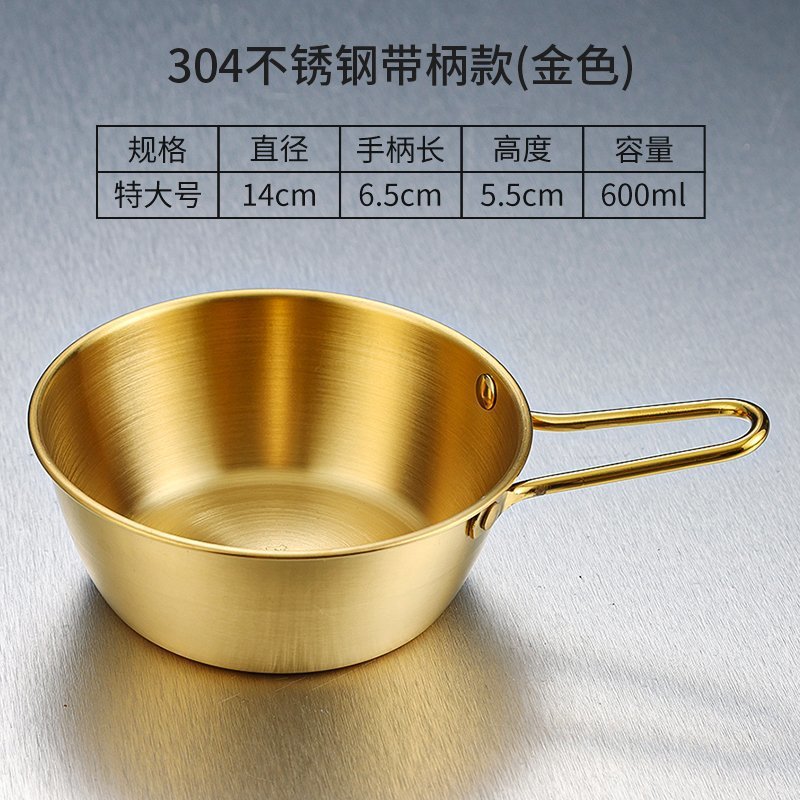 손잡이가 달린 스테인리스 쌀 와인 그릇 한국 요리 조미료 간식 금 및 실버 노란색 알루미늄 그릇 한국 식당 304스토어 가기