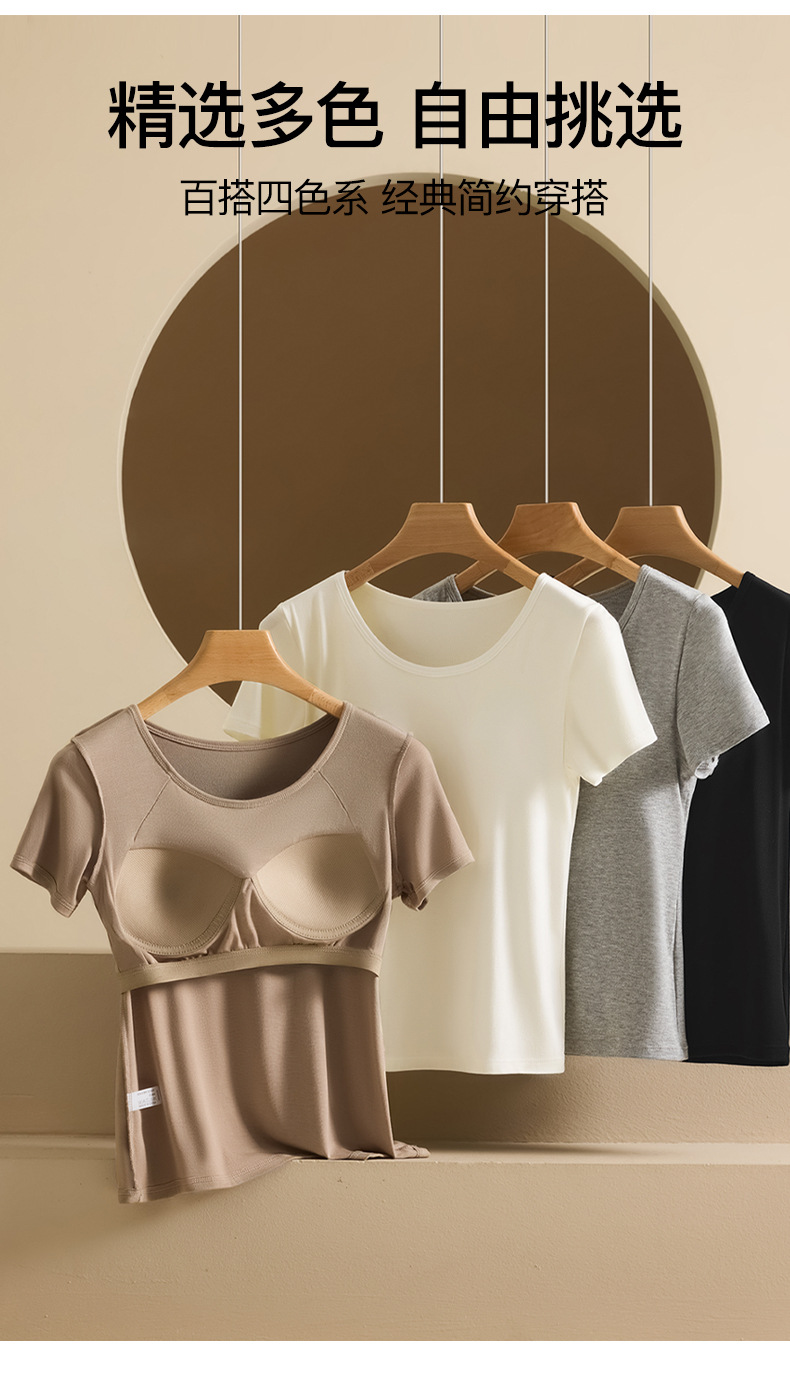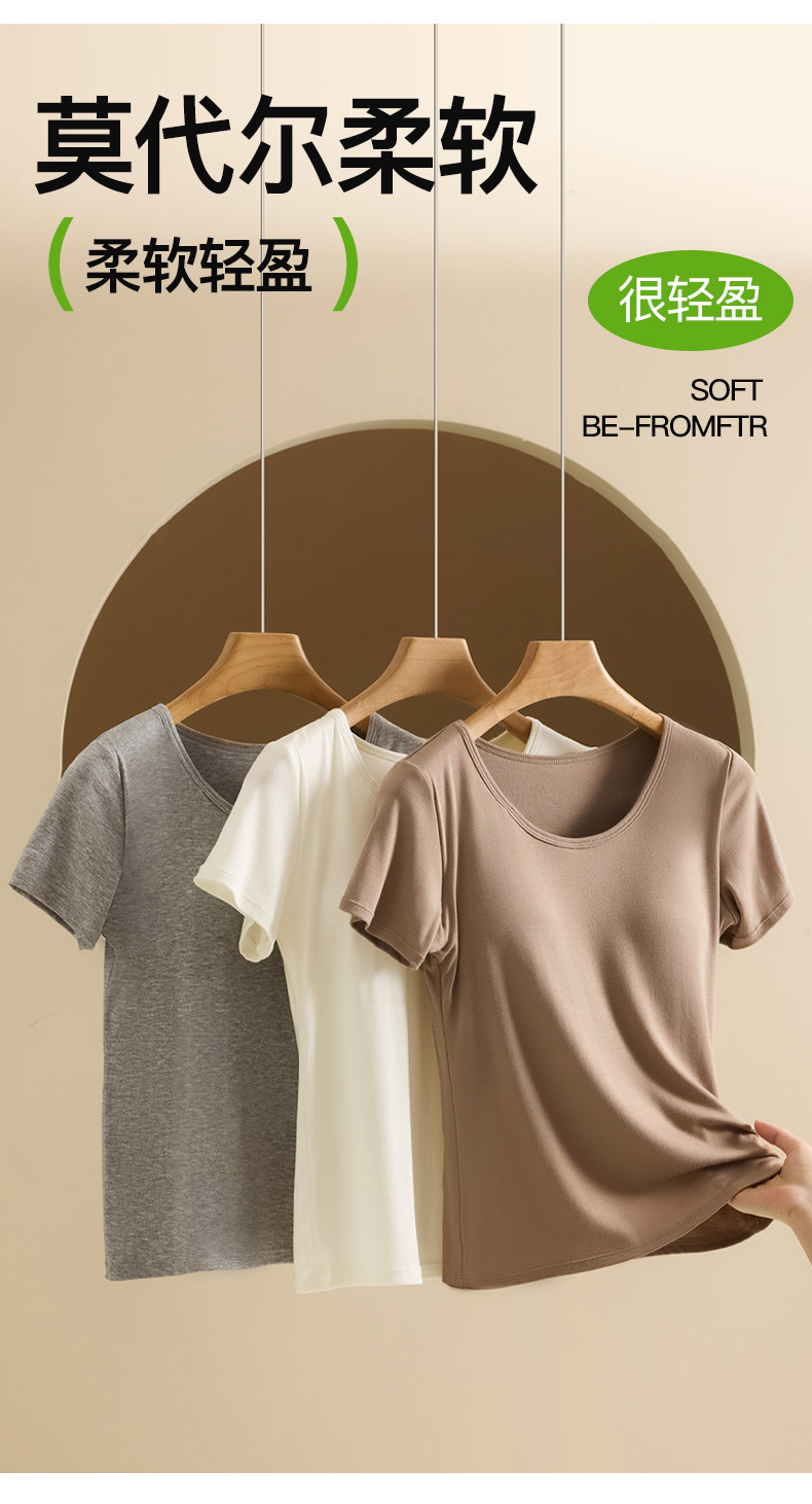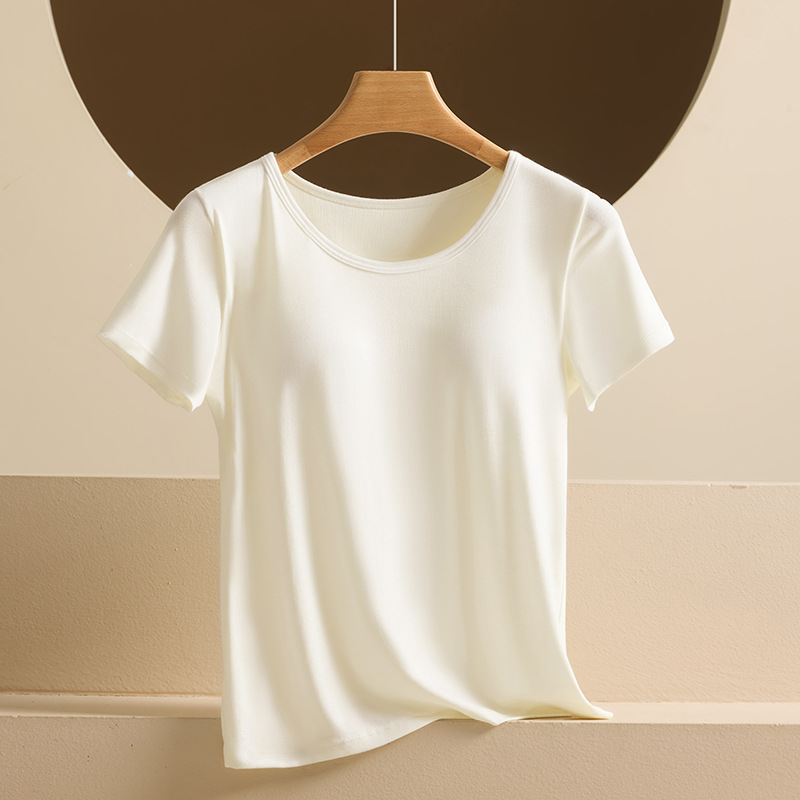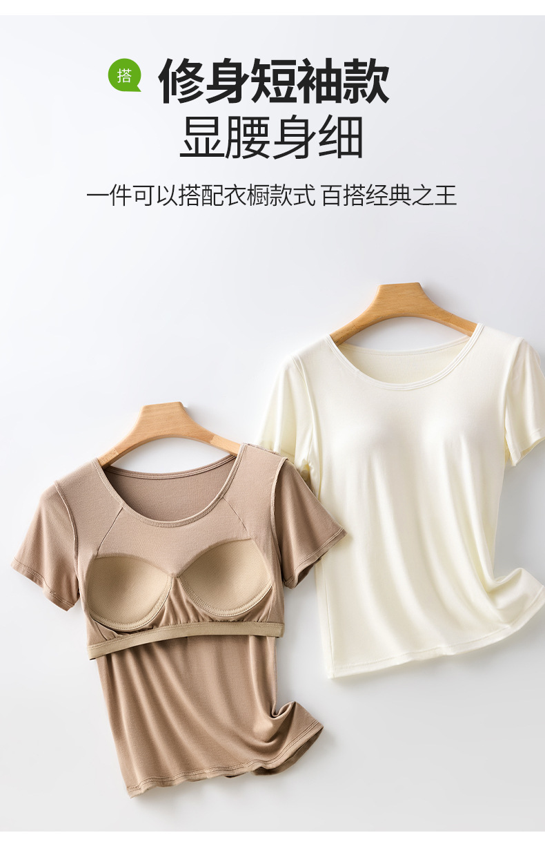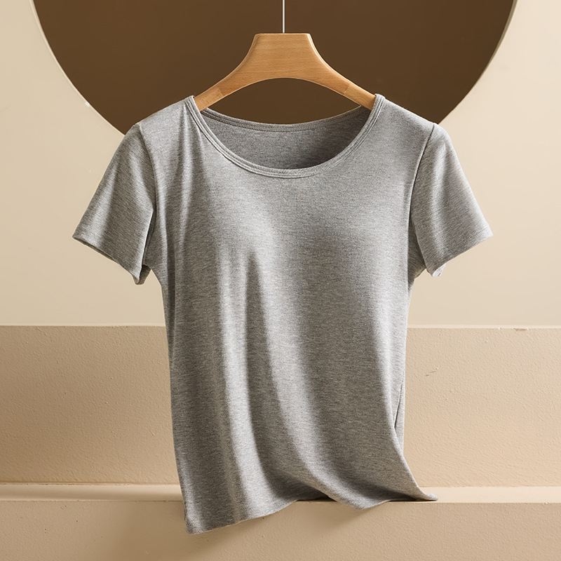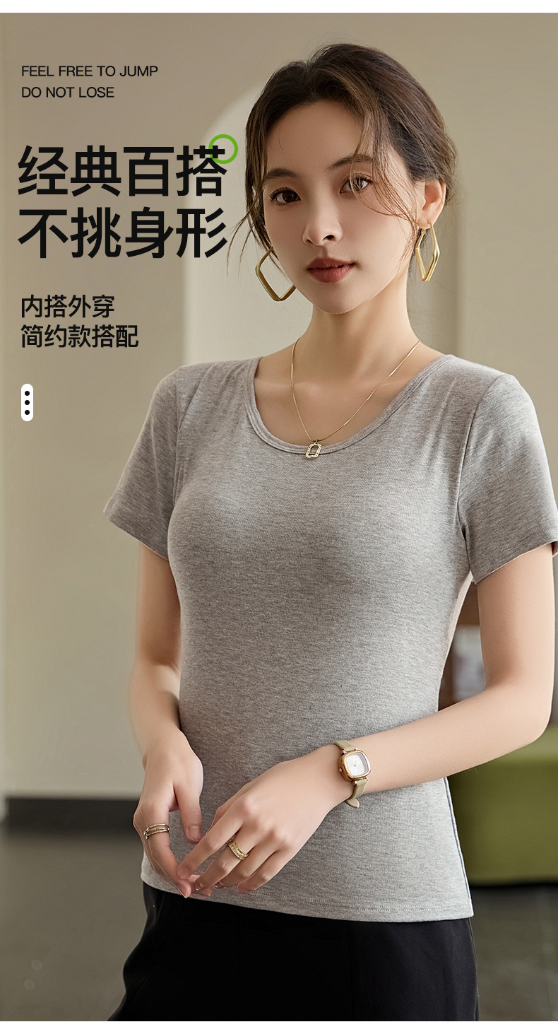 2025 여자 패션 올 매치 봄과 여름 새로운 반팔 티셔츠, 가슴 패드 컵 원피스 편안한 슬림 핏 캐주얼 탑스토어 가기
