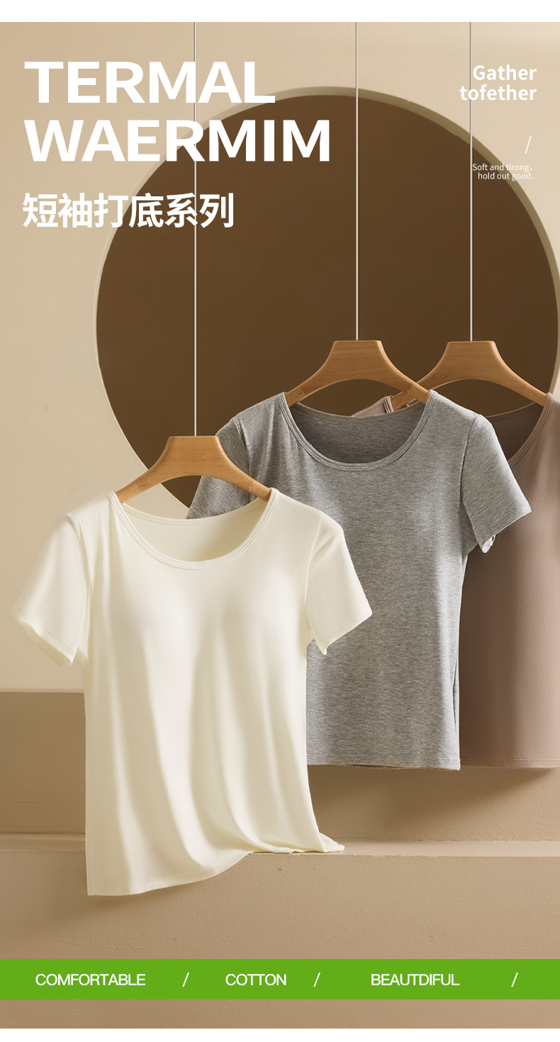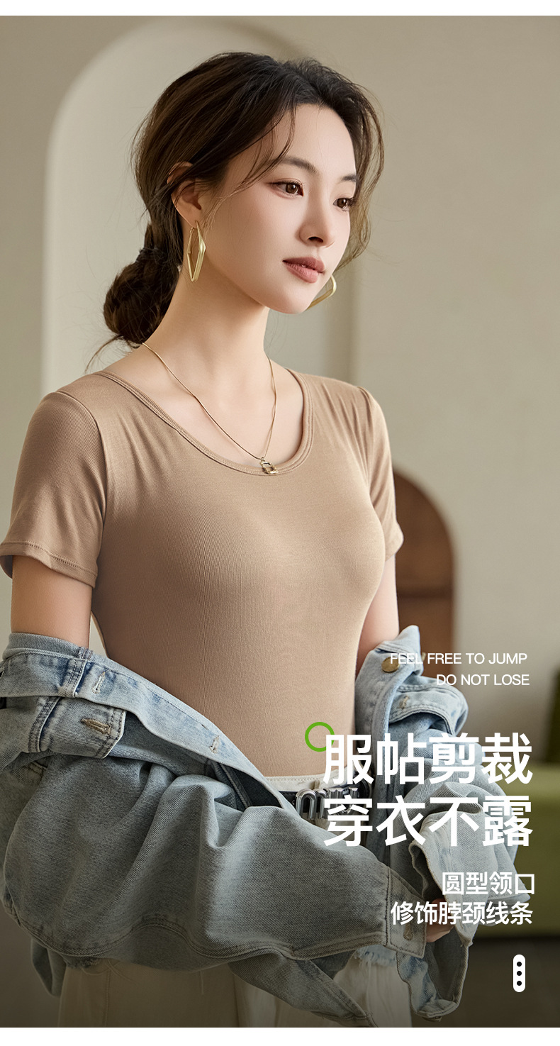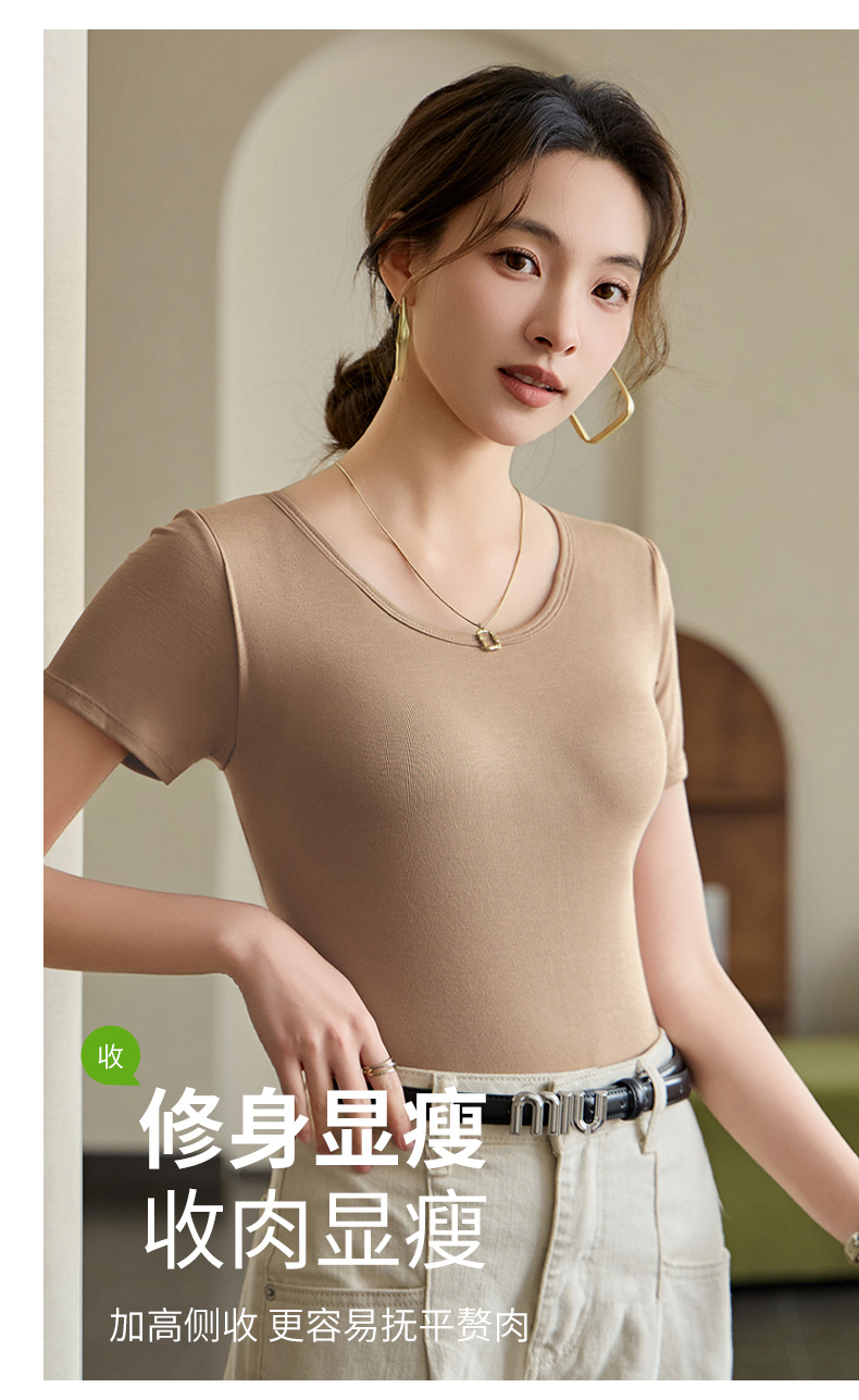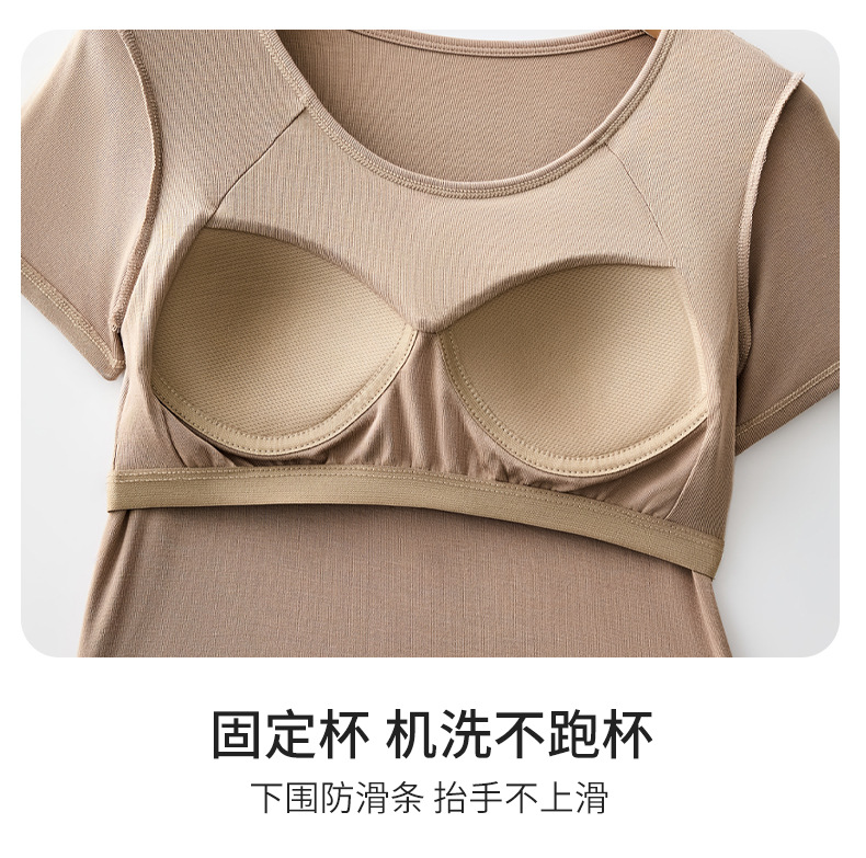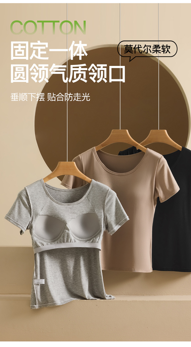 2025 여자 패션 올 매치 봄과 여름 새로운 반팔 티셔츠, 가슴 패드 컵 원피스 편안한 슬림 핏 캐주얼 탑스토어 가기
