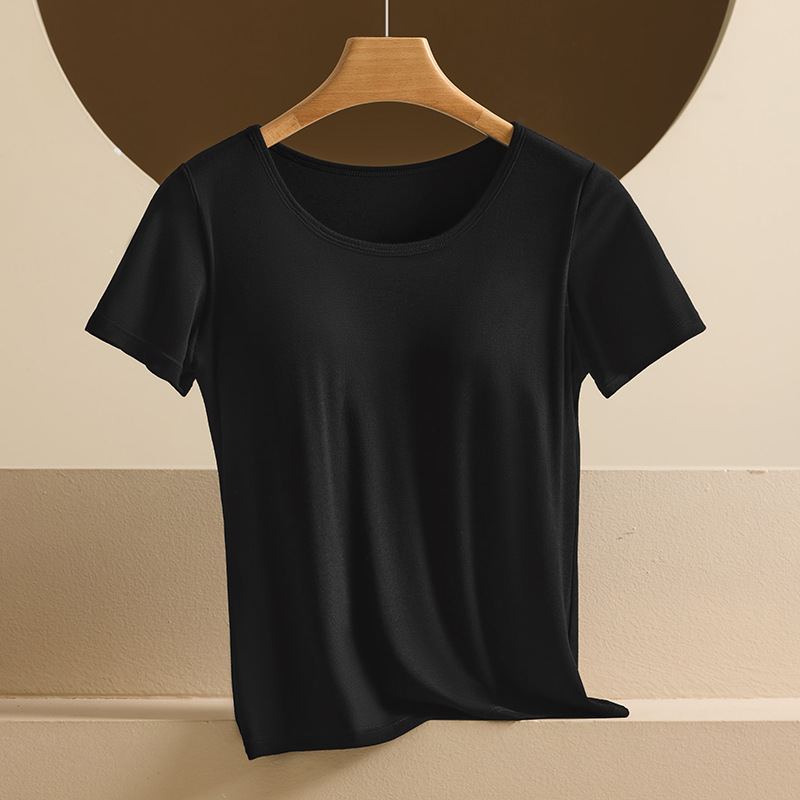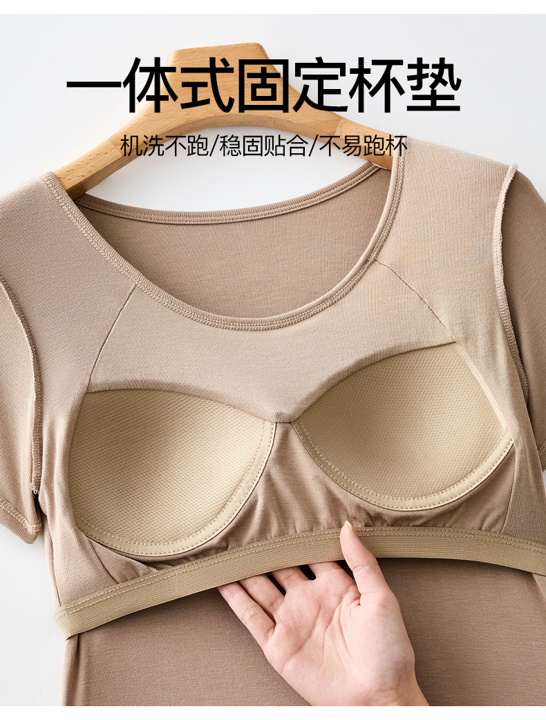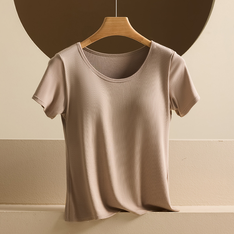 2025 여자 패션 올 매치 봄과 여름 새로운 반팔 티셔츠, 가슴 패드 컵 원피스 편안한 슬림 핏 캐주얼 탑