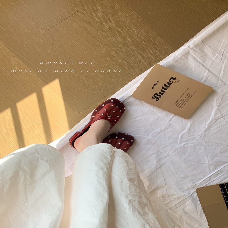 프랑스 스타일 우아한 평면 부드러운 저녁 반 슬리퍼 여성의 여름 외부 착용 활 발레 바오 터우 샌들