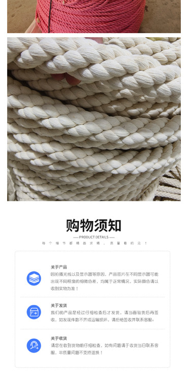 면 로프 세 가닥 굵은 면 로프 장식 면 로프 태피스트리 로프 DLY 공예 면 로프 Saliva 샘플링 면 로프 로프스토어 가기
