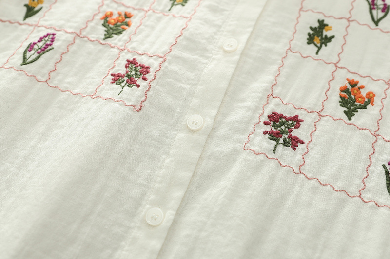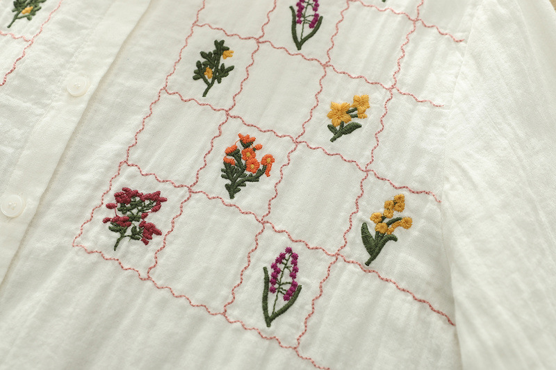 일본 스타일 신선한 스타일 격자 무늬 자수 꽃 여성 카디건 더블 원사 긴 소매 셔츠 도매 패션스토어 가기