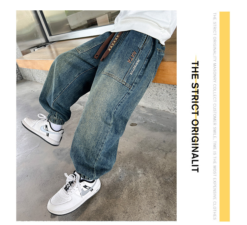 아동복 남아 청바지 봄 가을 2026 신상 중대형 아동용 조거 팬츠 아동 캐주얼 바지 스포츠 롱 팬츠 하이웨이스트
