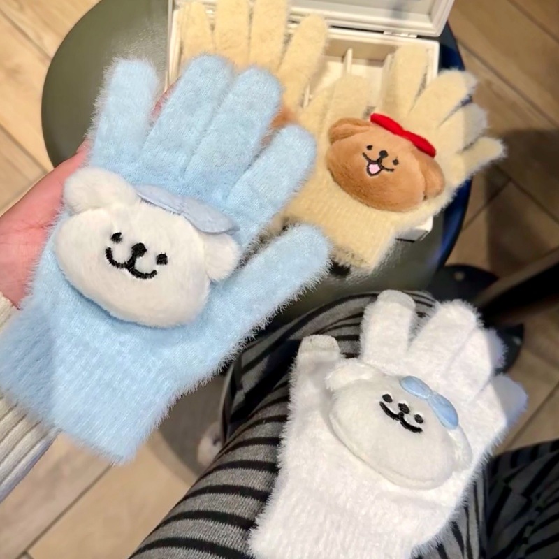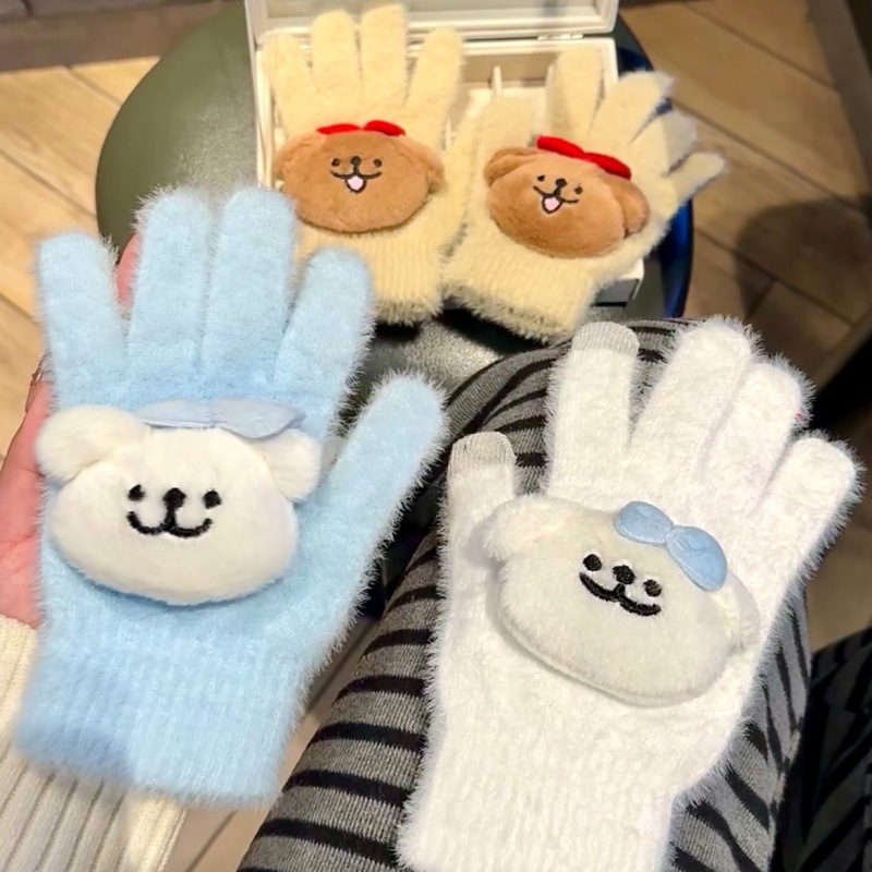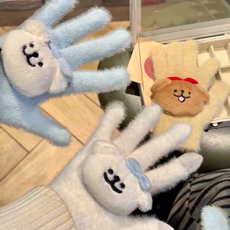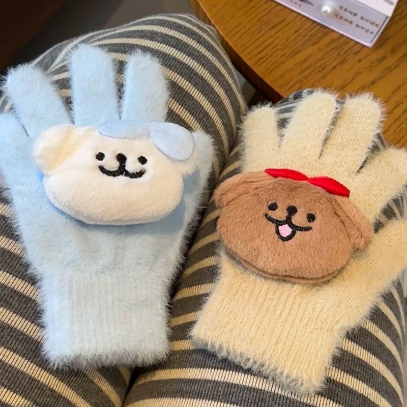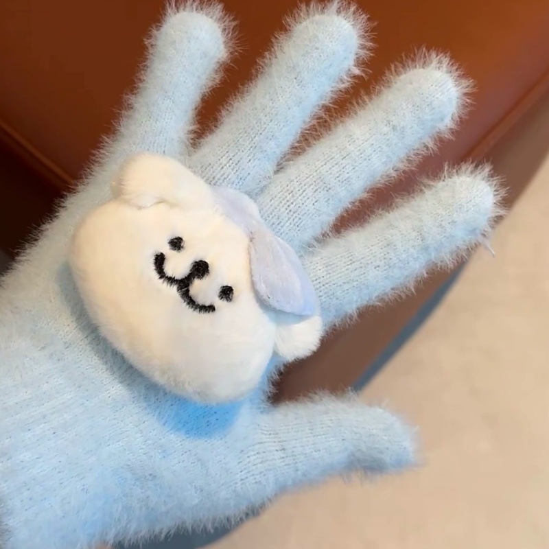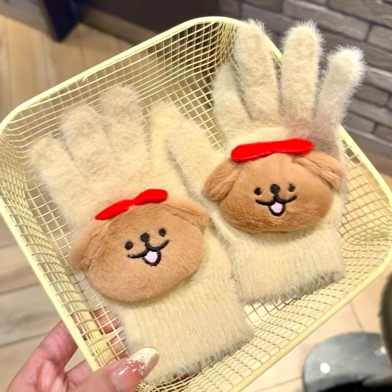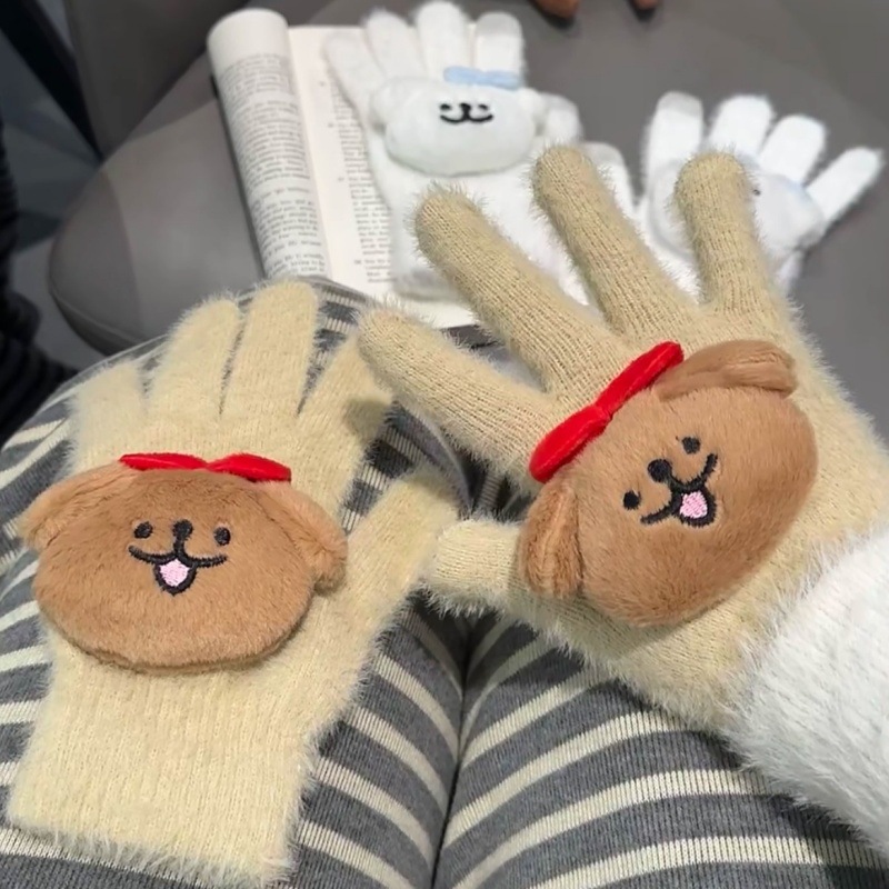 모피 강아지 장갑 따뜻한 겨울 부동액 봉제 부드러운 사랑스러운 소녀 차가운 학생 자전거 모방 토끼 벨벳을 타고스토어 가기