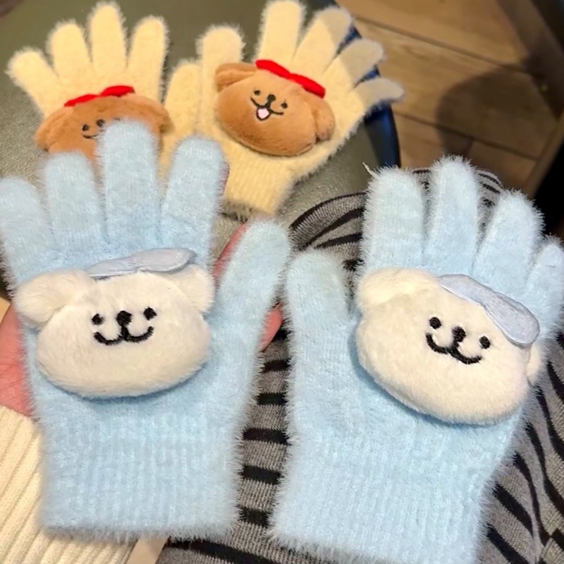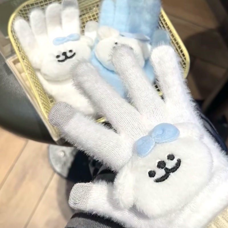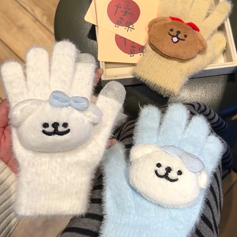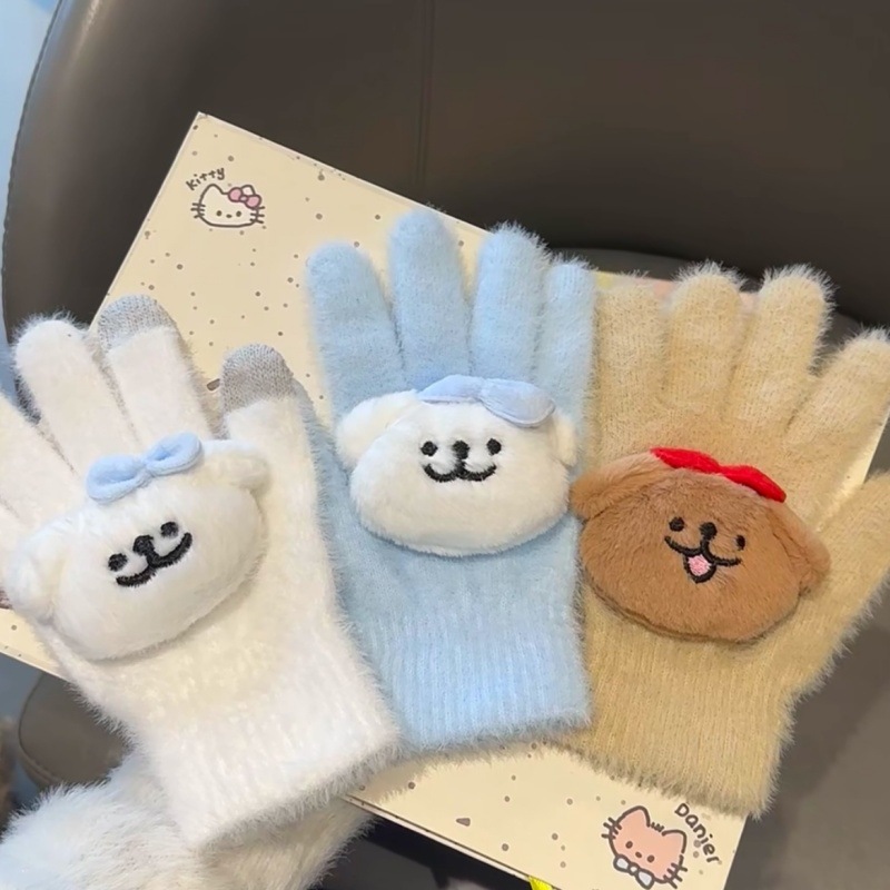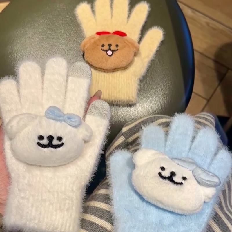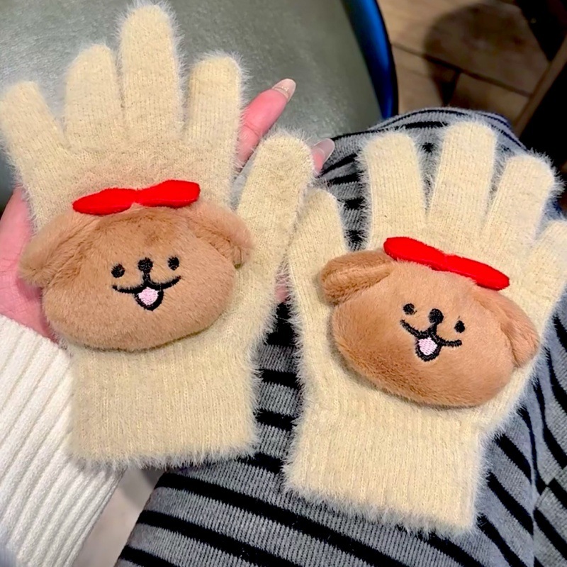 모피 강아지 장갑 따뜻한 겨울 부동액 봉제 부드러운 사랑스러운 소녀 차가운 학생 자전거 모방 토끼 벨벳을 타고스토어 가기