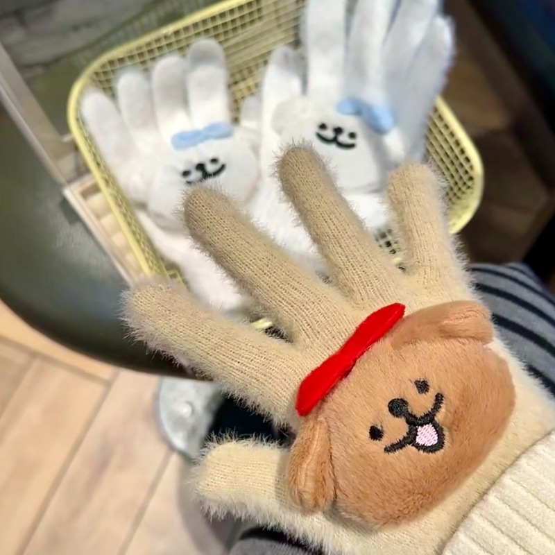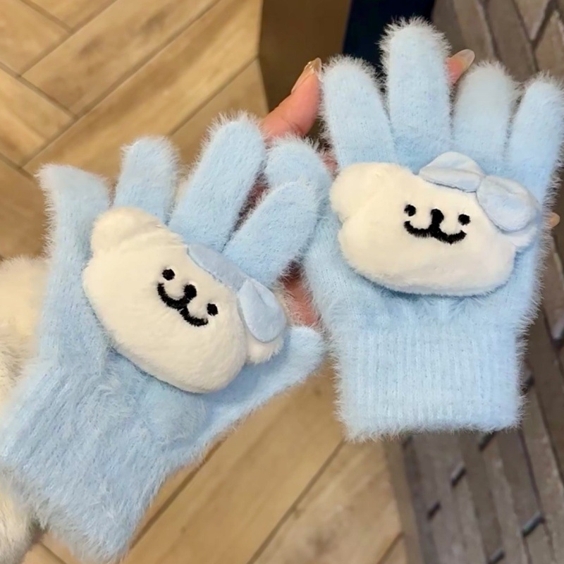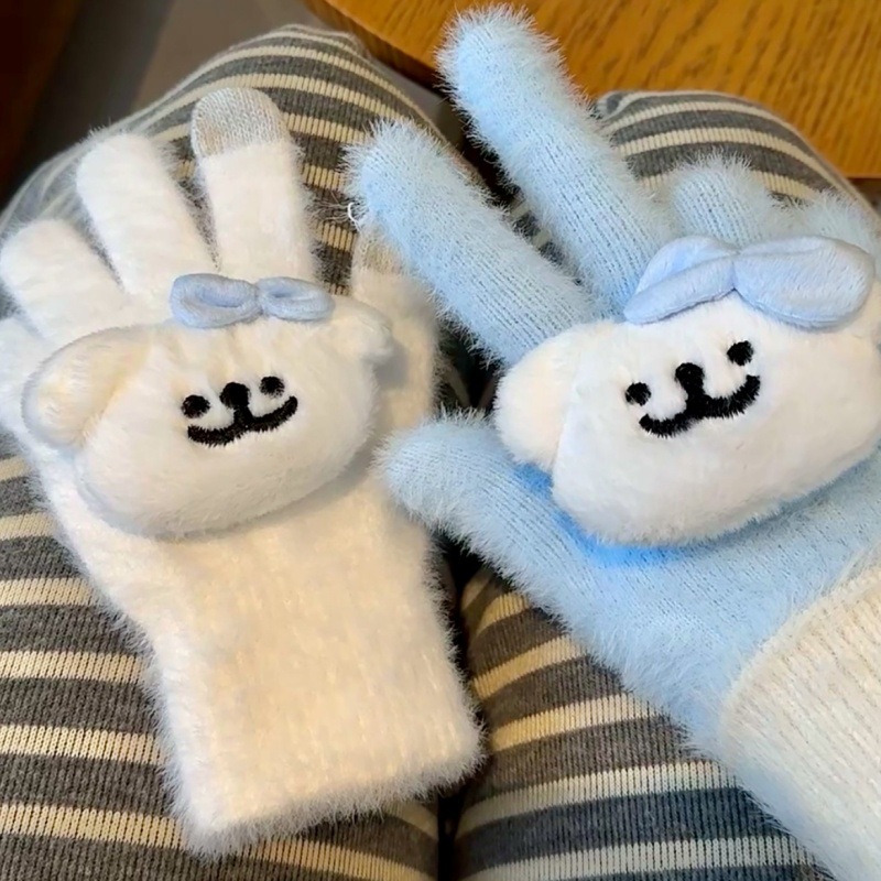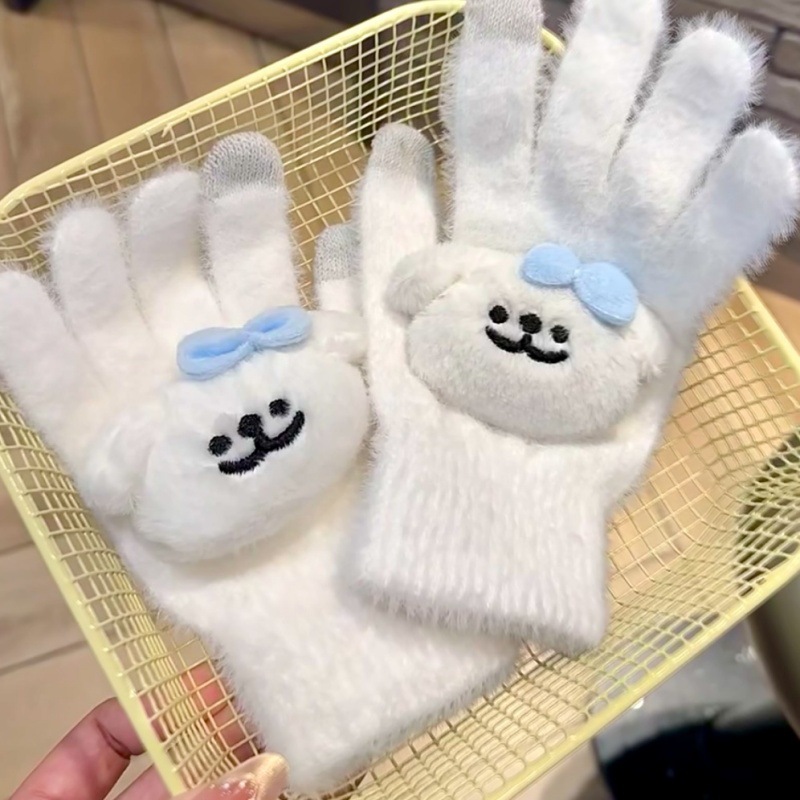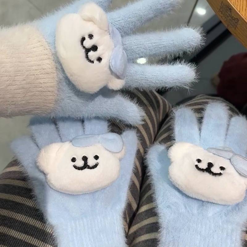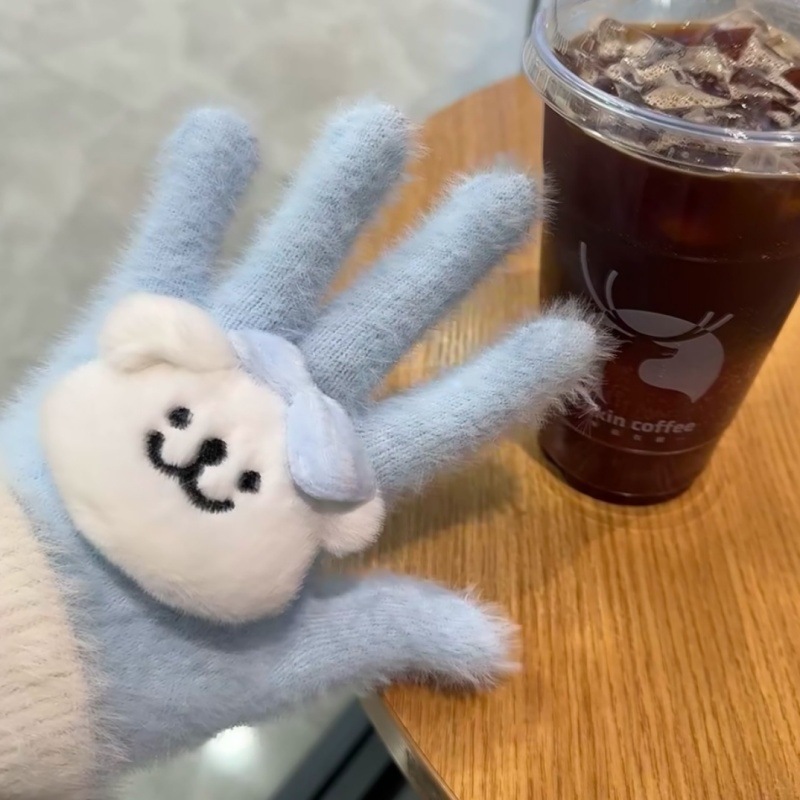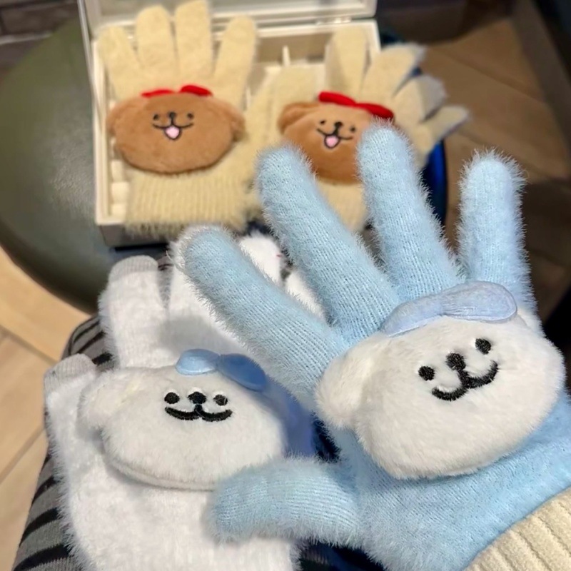 모피 강아지 장갑 따뜻한 겨울 부동액 봉제 부드러운 사랑스러운 소녀 차가운 학생 자전거 모방 토끼 벨벳을 타고스토어 가기