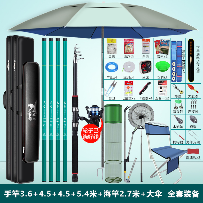 • 손대 3.6+4.5+4.5+ 5.4m + 바다대 2.7m + 큰 우산 + 장비 풀 세트