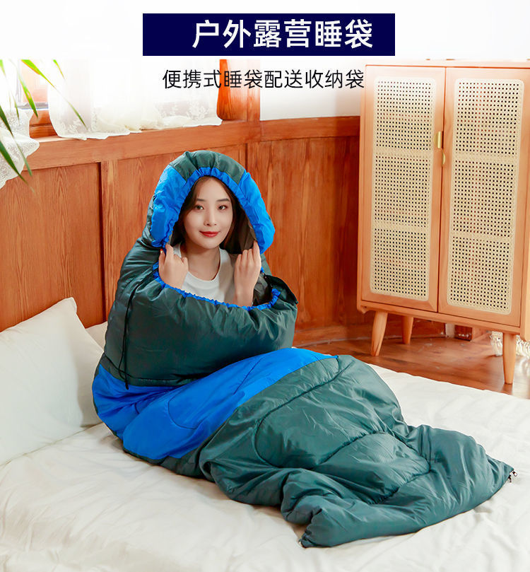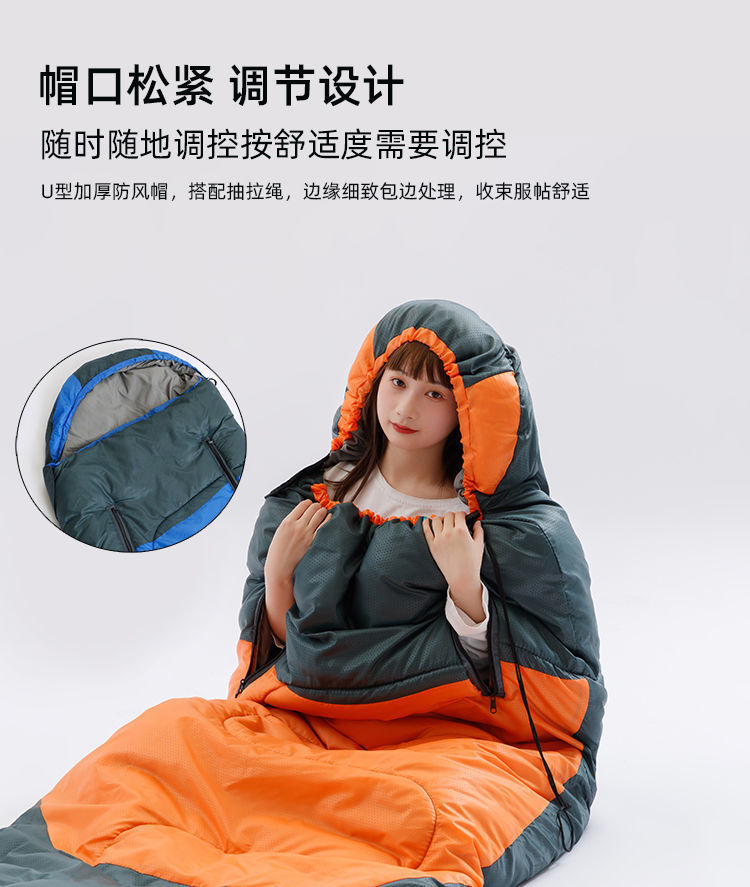야외 감기 방지 슬리핑 백 성인 겨울 캠핑 두꺼운 따뜻한 성인 실내 사무실 여행 스플라이스 슬리핑 백