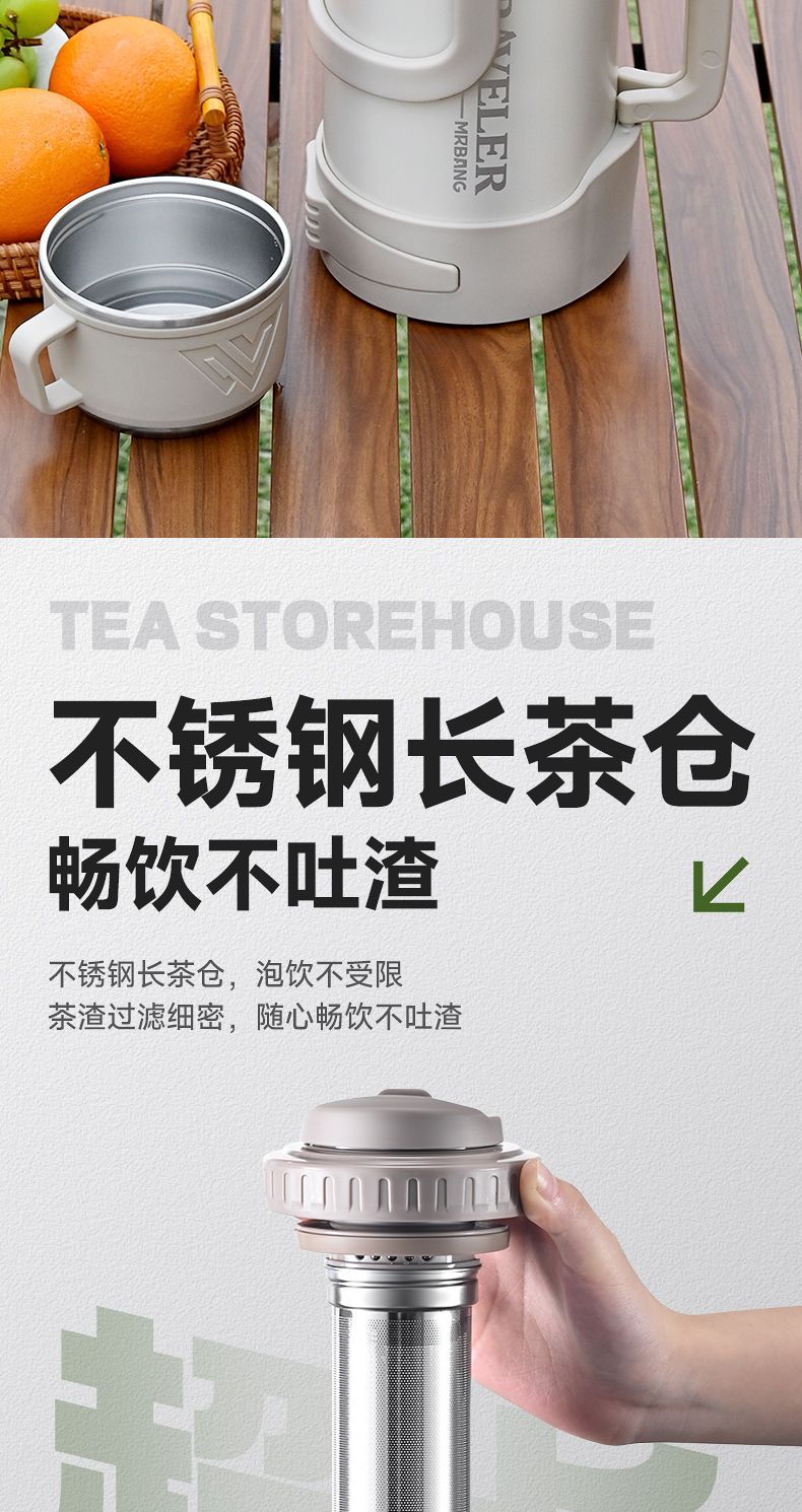 • 1200ML 베이지 [바운스 내부 커버 + 차와 물 분리 + 조절 가능한 스트랩]