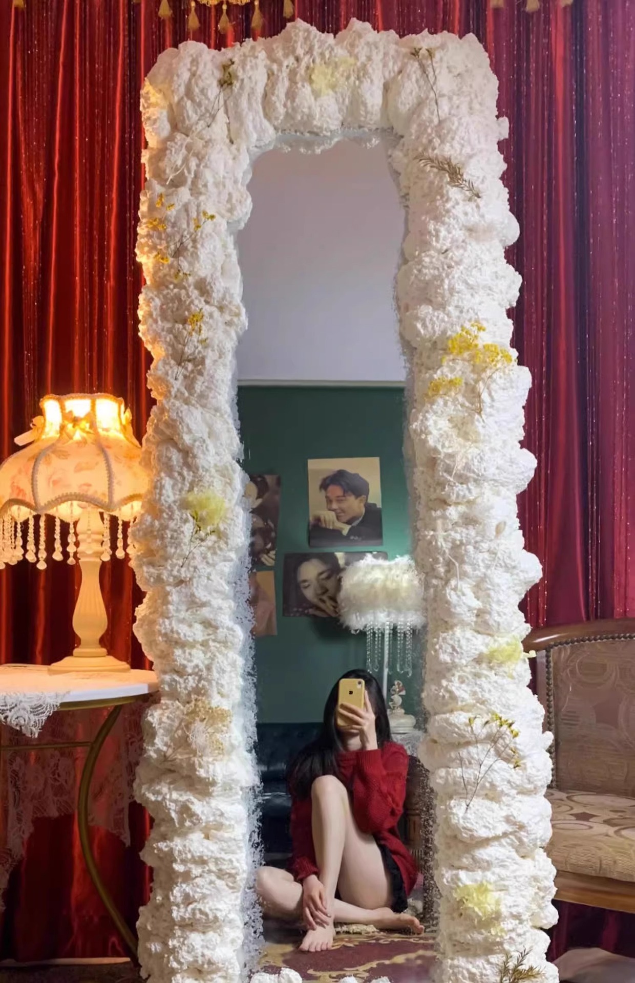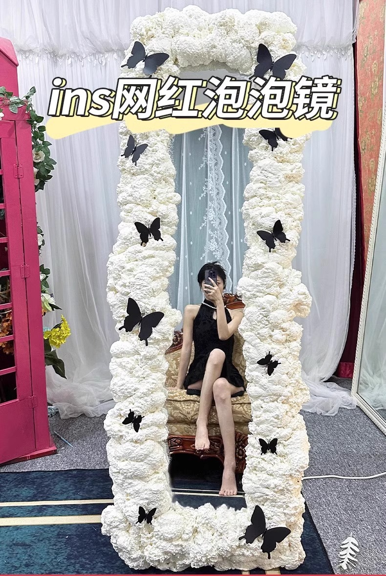 거품 접착제 그물 붉은 구름 거품 거울 전신 거울 DIY 크림 접착제 프레임 장식 유치원 반지 생성 거품 접착제