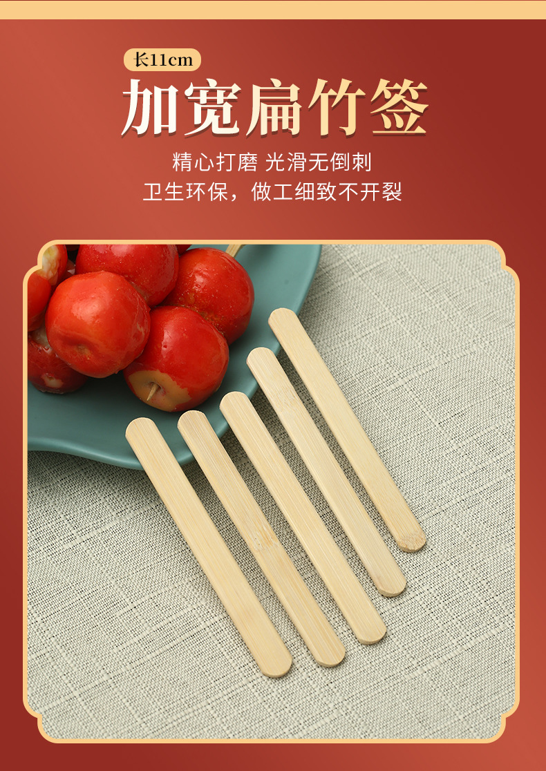 • 11cm 설탕에 절인 산사나무 납작한 대나무 막대기 [100개]
